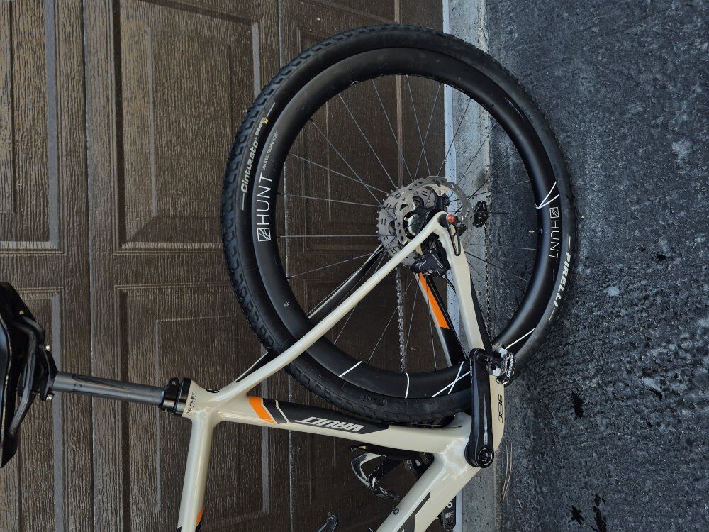Pivot vault carbon gravel bike. Bike comes with RX ultegra groupset, Hunt limetless carbon wheels and a spare set of dt swiss aluminum wheels. 56 cm.