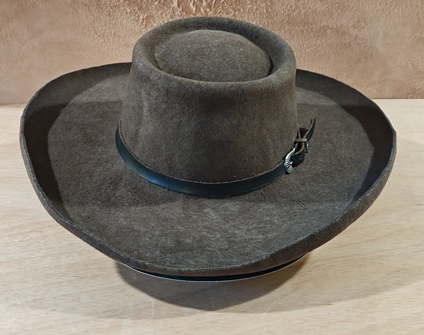 Hand made hat with custom hatband. Text me for colors. 100x (100% Beaver) - $1,200 50x (Beaver/Rabbit) - $800 15x (Rabbit) - $400 (currently available in brown, black, and bone (off-white)) 5x (Wool) - $190 2x (Wool) - $105 Turn around is 4 to 6 weeks, unless stated otherwise. $70 up front, balance paid upon completion.