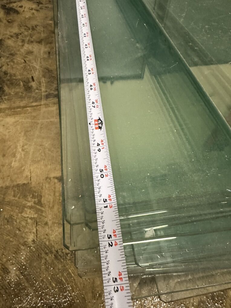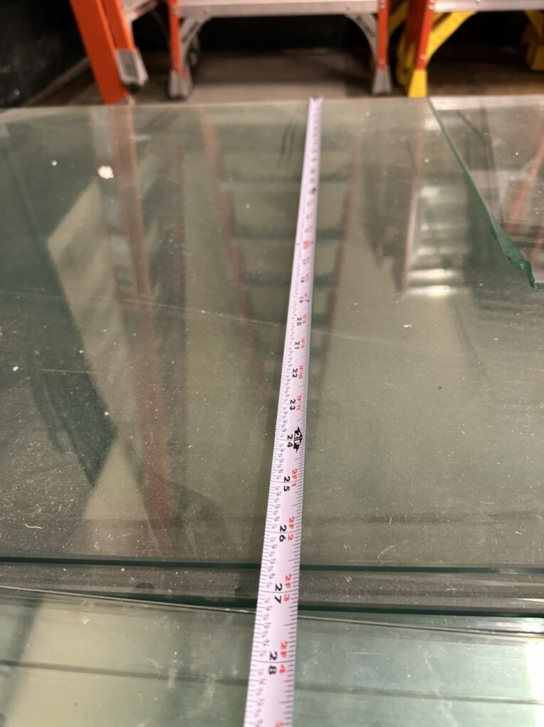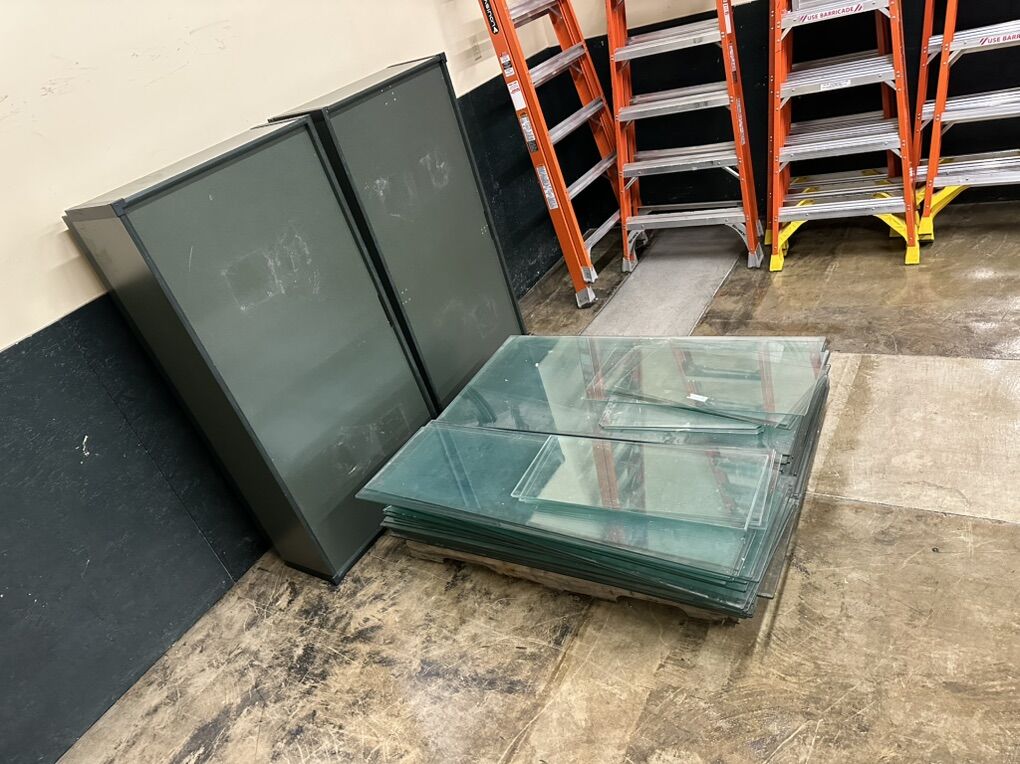 -2 green tables - see photos for measurements 16” tall 60” x 30” width -Many glass tops - see photos for measurements 52” x 16” and 52” x 26 1/5”