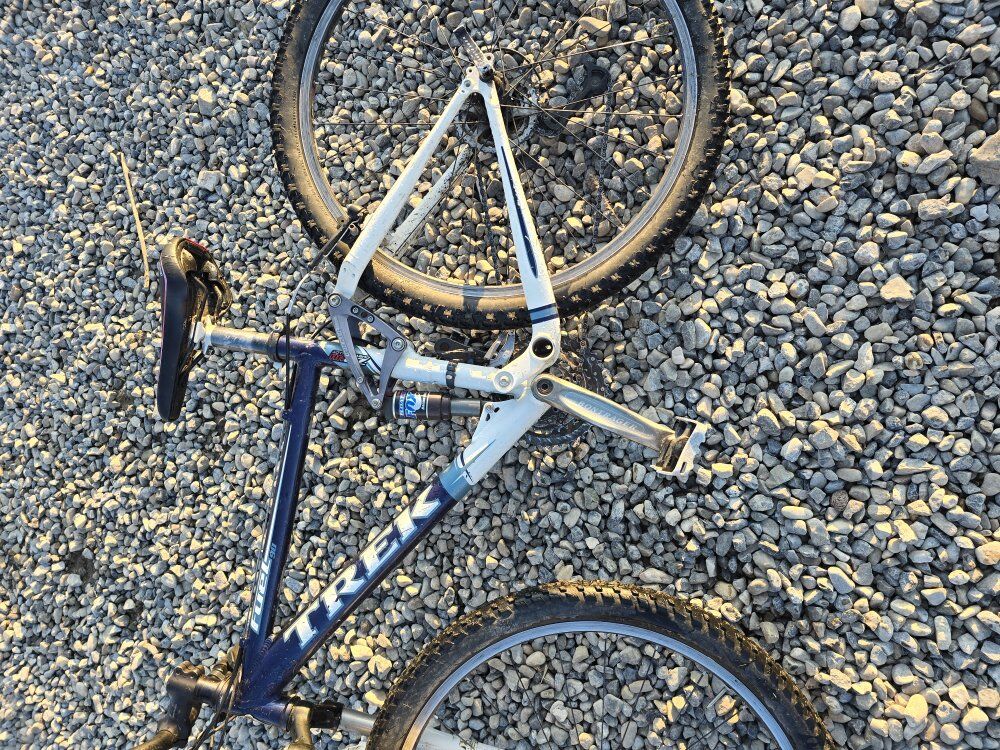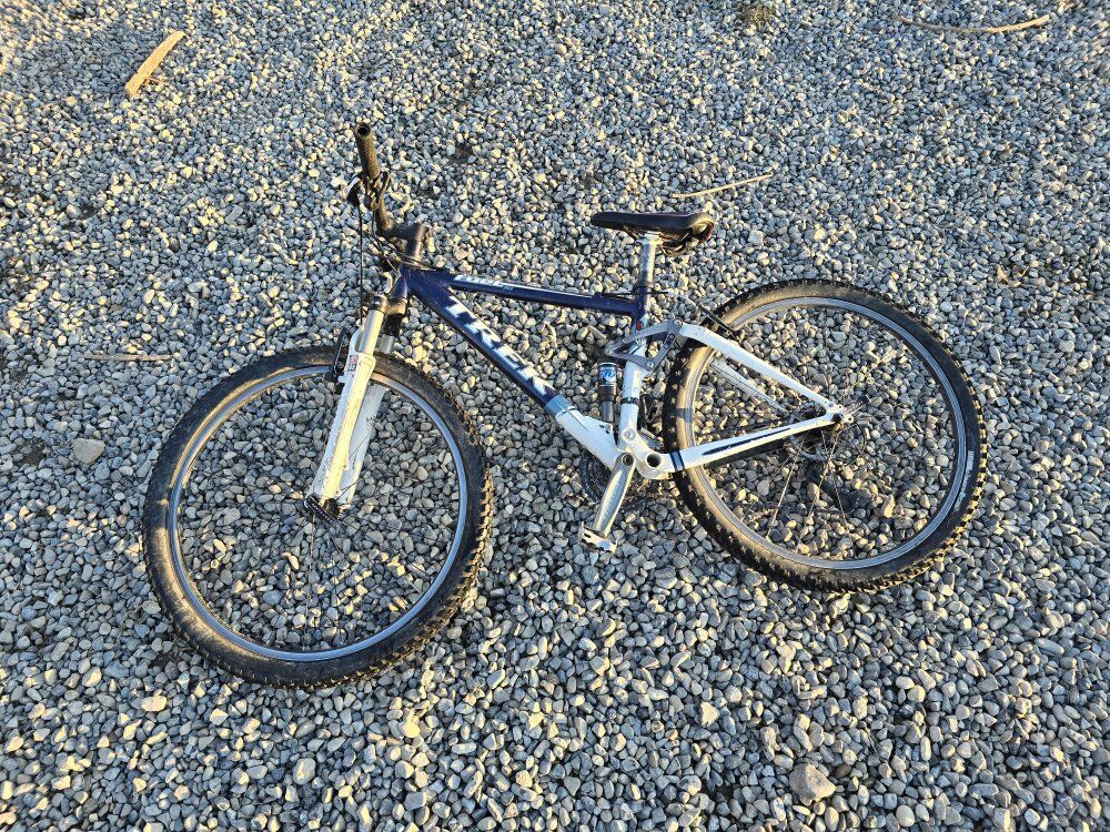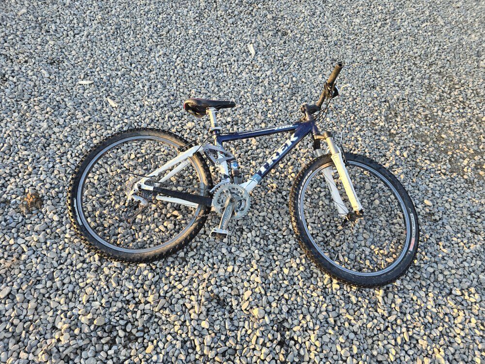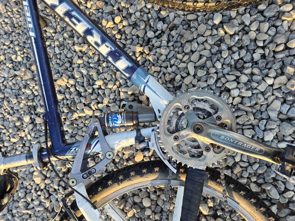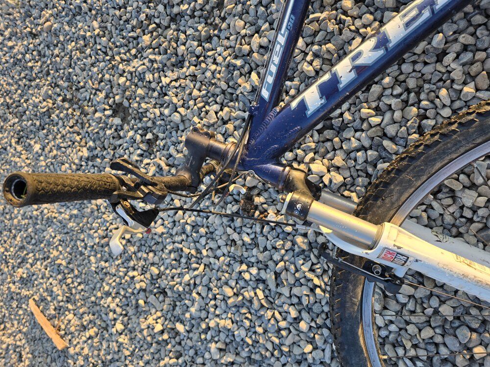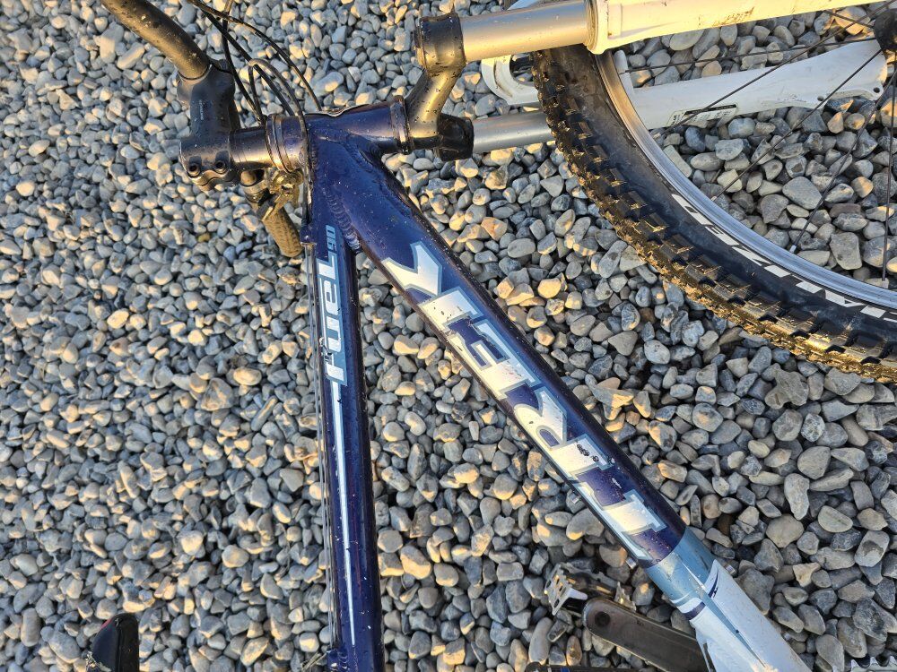 Treck fuel 90 mountain bike Production year 2004 Frame size small for people between (4 foot 11 and 5 foot 6 Shimano deore XT rear derailleur Shimano deore front derailer Bontrager race pedals Front suspension Rock shock Duke 80mm travel rear suspension fox float R racing 90mm travel shock with rocker link Chain gard tape single digit 3 rim brakes Tube tire linings in both tires that are 80$ per tire they are installed and included with the bike