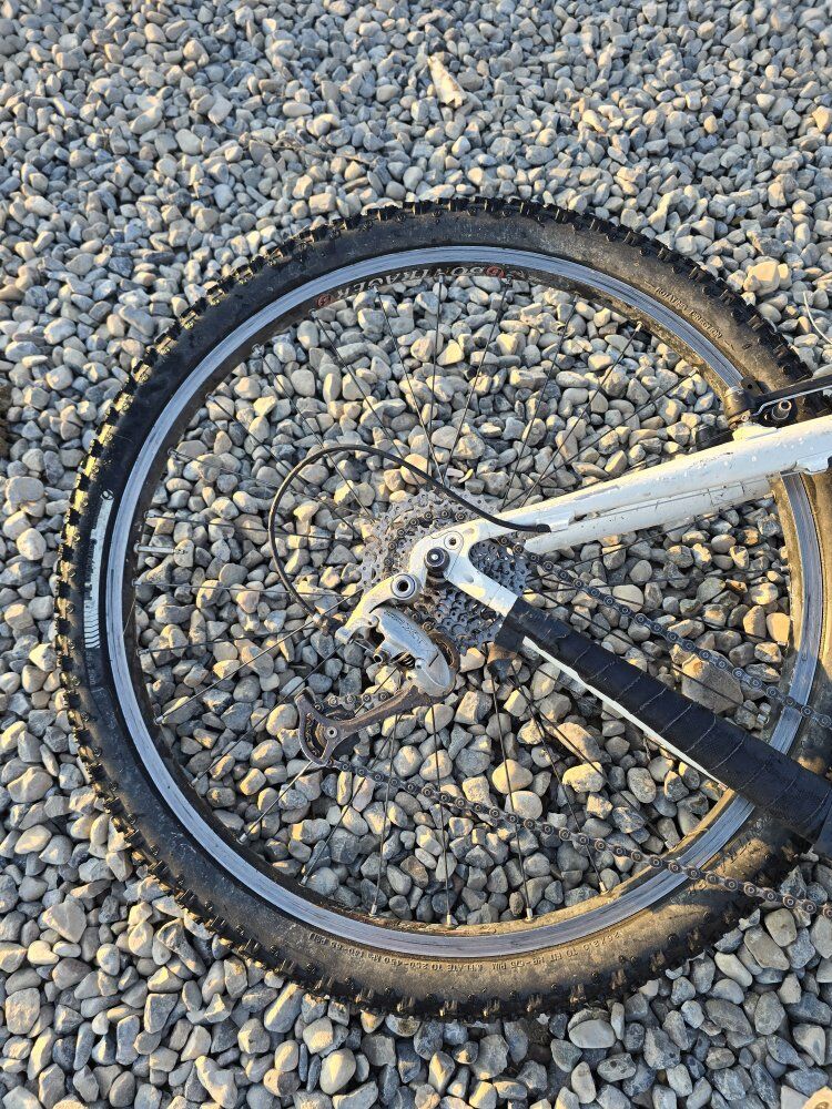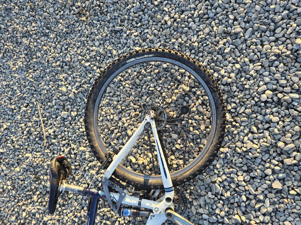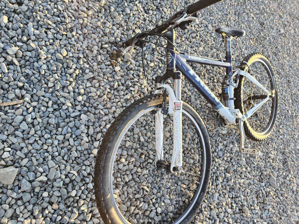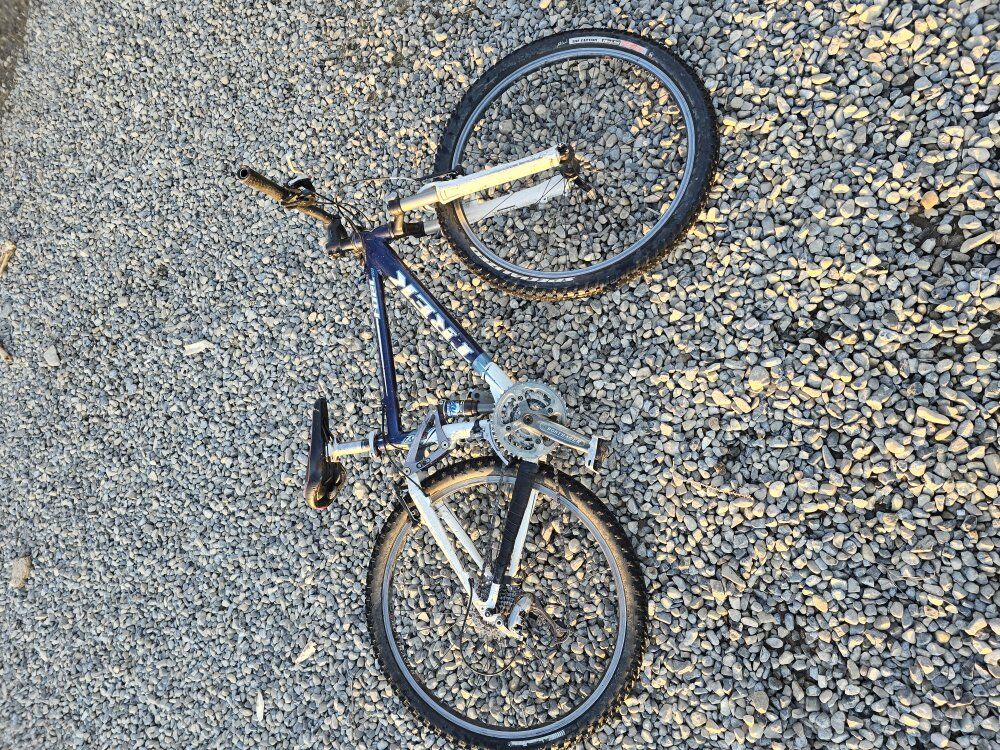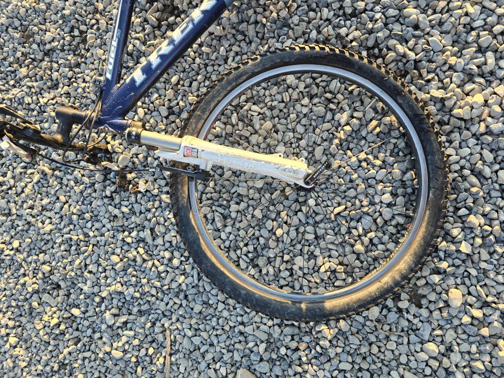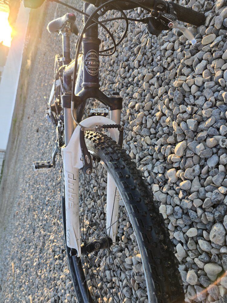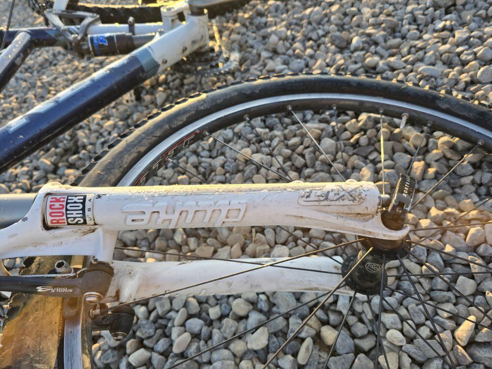 Treck fuel 90 mountain bike Production year 2004 Frame size small for people between (4 foot 11 and 5 foot 6 Shimano deore XT rear derailleur Shimano deore front derailer Bontrager race pedals Front suspension Rock shock Duke 80mm travel rear suspension fox float R racing 90mm travel shock with rocker link Chain gard tape single digit 3 rim brakes Tube tire linings in both tires that are 80$ per tire they are installed and included with the bike