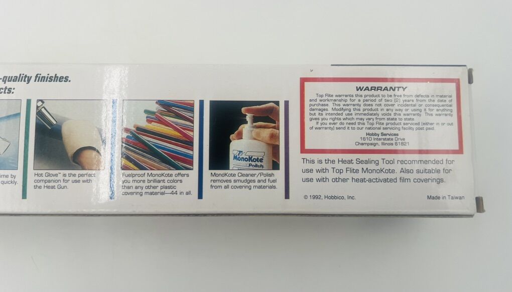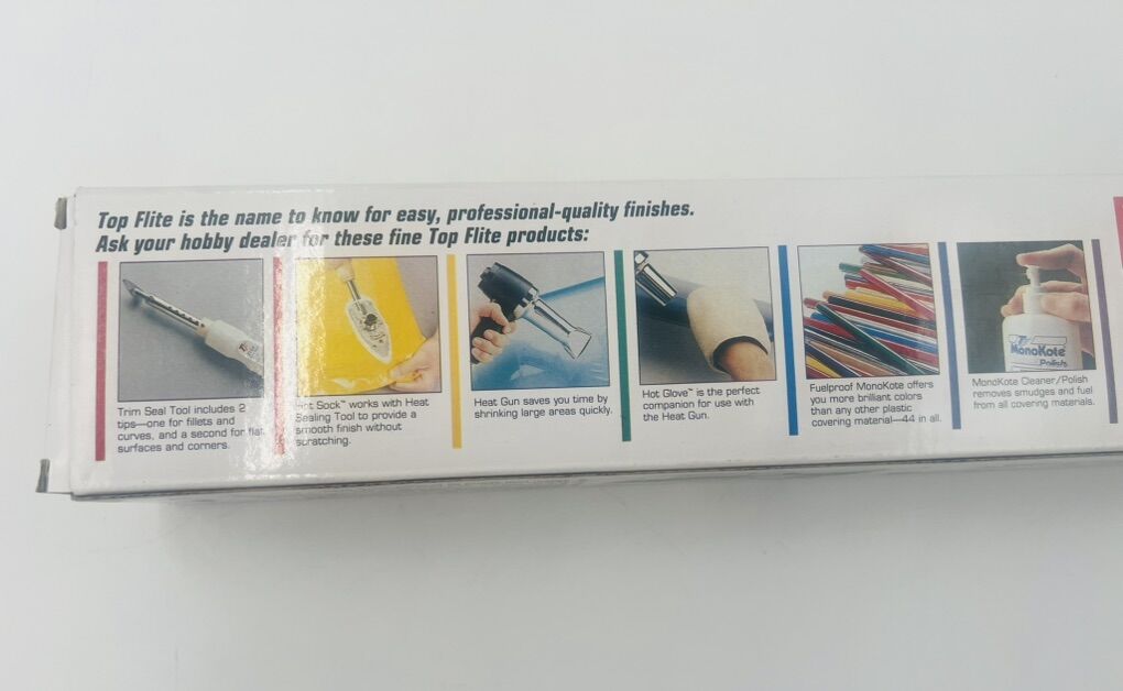 The NOS Top Flite Monokote Sealing Iron Heat Seal Tool is a brand new in box product from Japan. This iron, specifically designed for RC model vehicles, is ideal for sealing and sealing Monokote material for a secure and professional finish. Top Flite is a trusted brand in the RC community, known for their quality products and attention to detail. The MS-2 model is a reliable tool for hobbyists looking to enhance their RC vehicles with a smooth and durable seal.