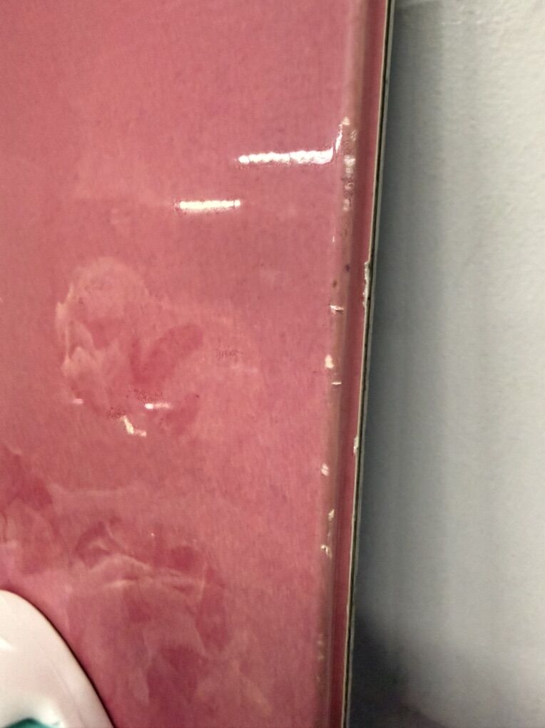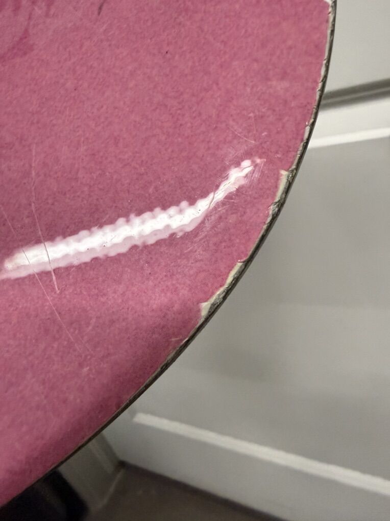 It has some chips here and there along the edges, as well as some scratches on the bottom.