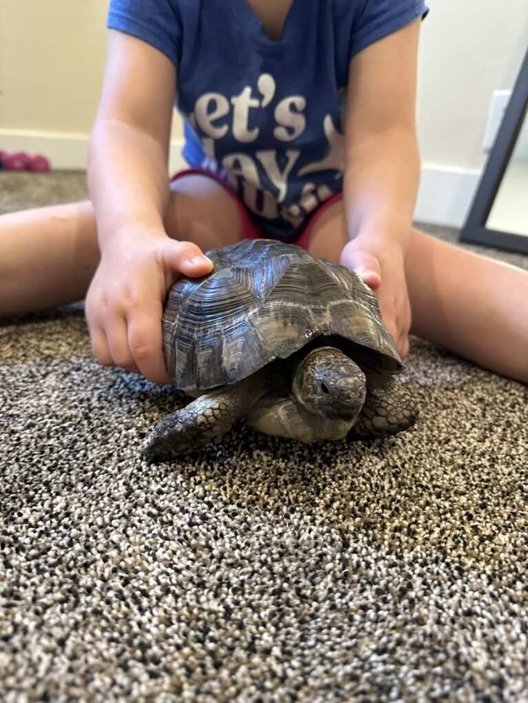 Wally is a 9 year old tortoise that has been a part of our family for two years. He loves eating lettuce out of our hands and running around in the yard in the summer.