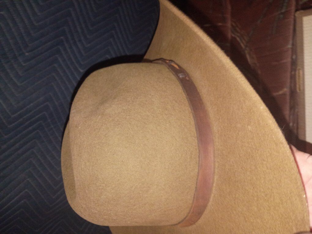 Brand new in the box size 7 1/2 Buffalo fur cowboy hat. water resistant. had it a while but have never wore it so it's just sat in the box and storage. it's in great shape. need to get rid of it but don't see any occasions that I will be wearing it.