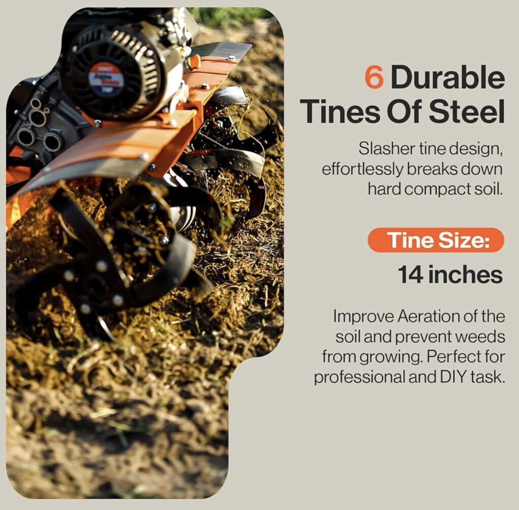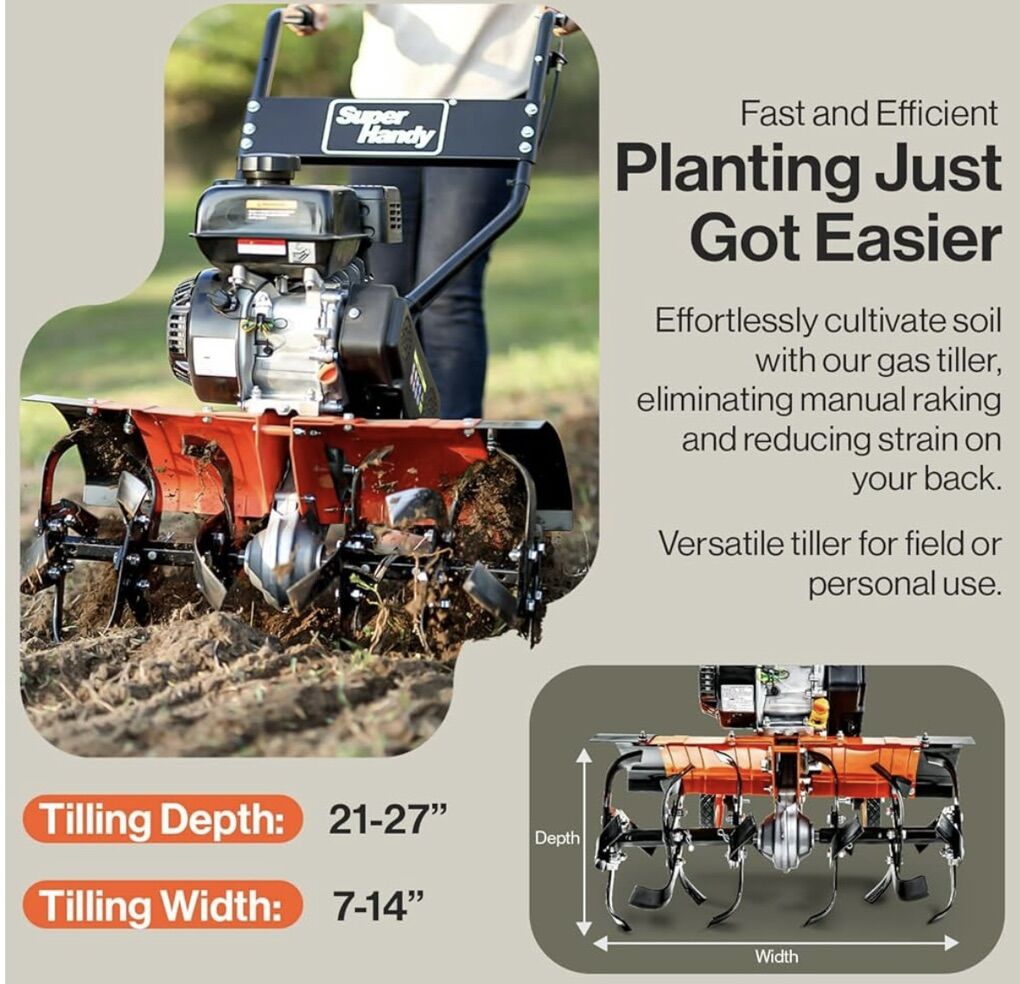 SuperHandy Tiller Cultivator – 7HP 209cc Engine, Adjustable Tilling Width & Depth, Heavy-Duty Steel Tines for Garden Soil Prep, Landscaping & Weed Removal (Front Tine Tiller)