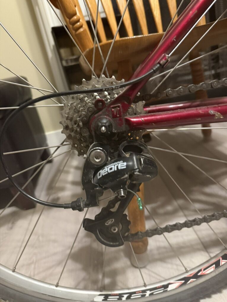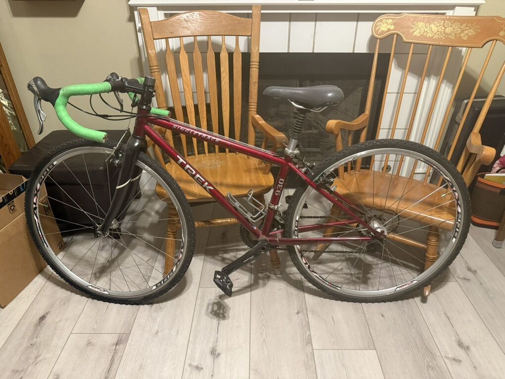 VenmoEarly 1990s trek mountain bike upgraded to a gravel bike. Multiple upgrades Deore components 2 x8 shifting, brakes, suspension seat post etc. New gravel tires. Uncertain of size probably a small or xsmall.