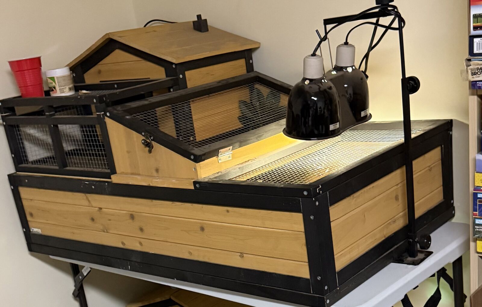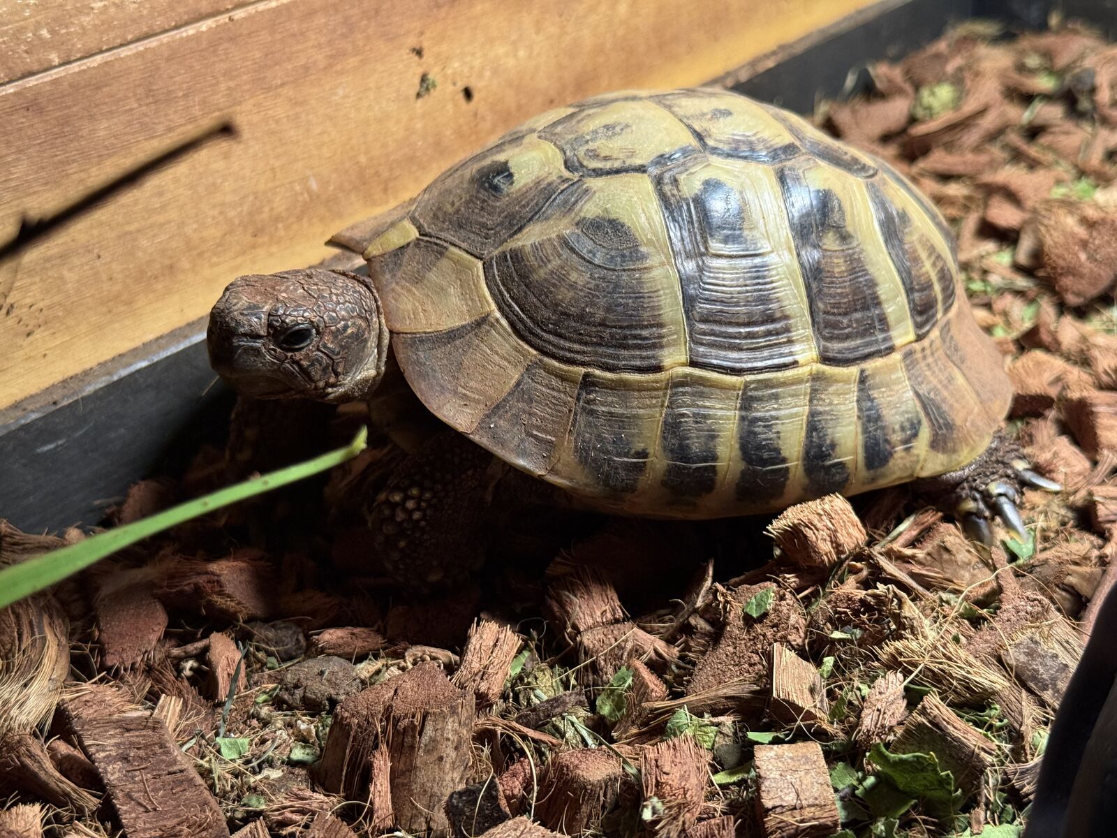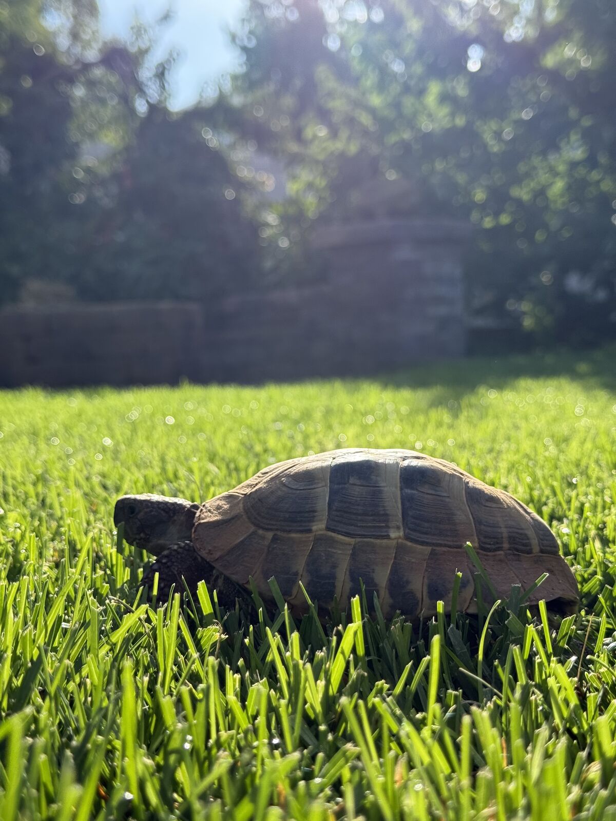 He is our male 4 year old Eastern Hermann tortoise. He is prestty much full size about the size of a softball. You wont need to change out his house for his size. He sure has a personality and we know you'll love him. We have had the pleasure of taking care of him for about 3 years and has had no heath problems! We have his home ready to go so it is truly a one stop shop! We are moving and won't be able to take him with us on our journey. We will be happy to know he goes to someone who will love him just as much as we have. listed below is what is all included: