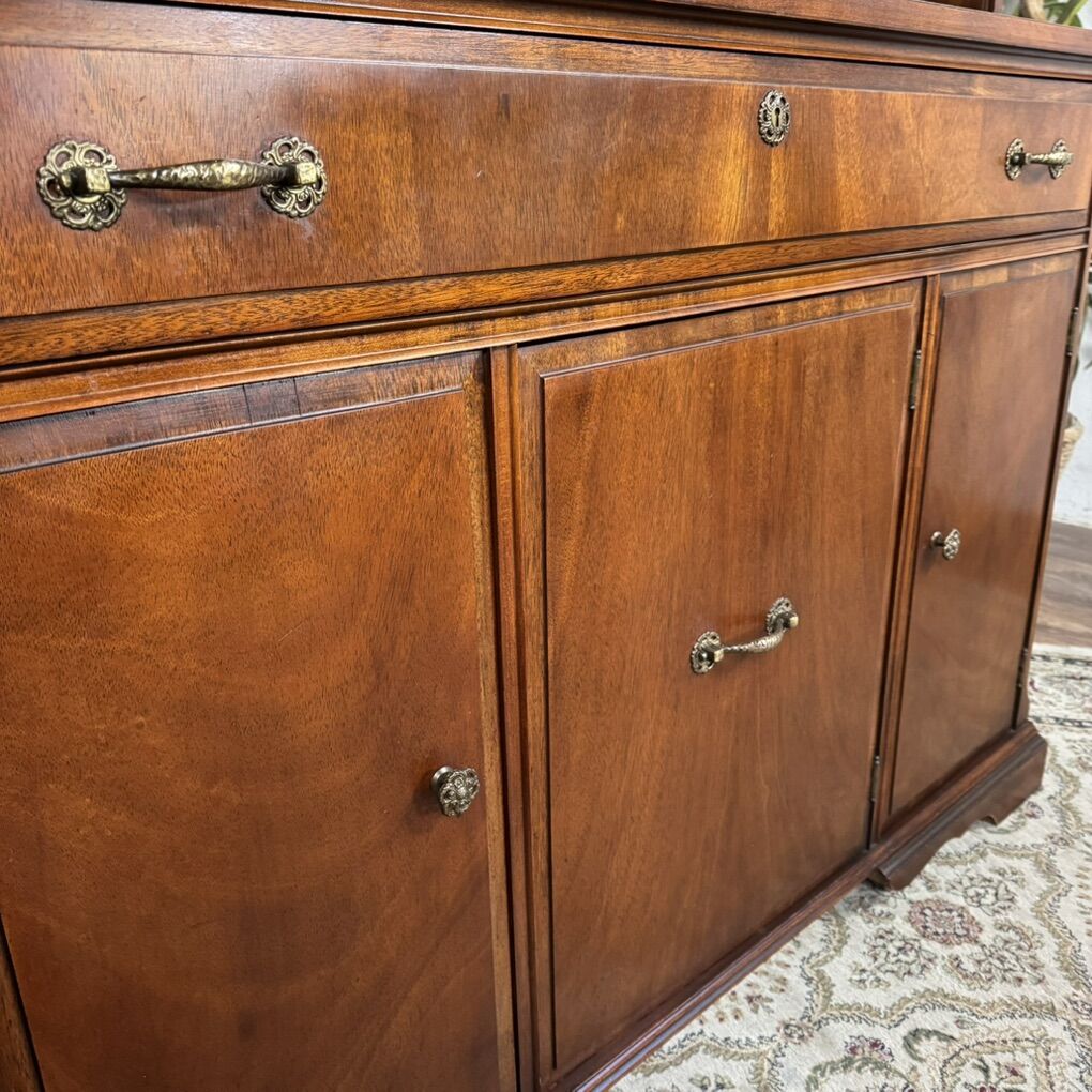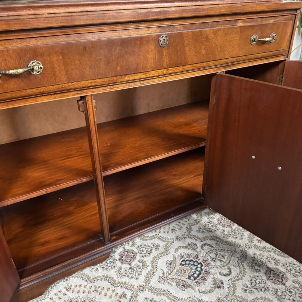 It has a two-piece design: The top hutch is removable! It’s easy to move, and you can use it as a full statement piece, or use the bottom buffet alone as a credenza, media console, or coffee bar (if you do opt to not use the top hutch, you will see some tone discrepancy on the top due to sunfading).