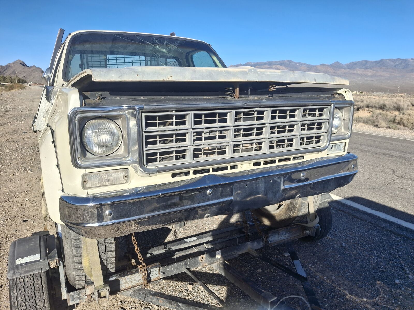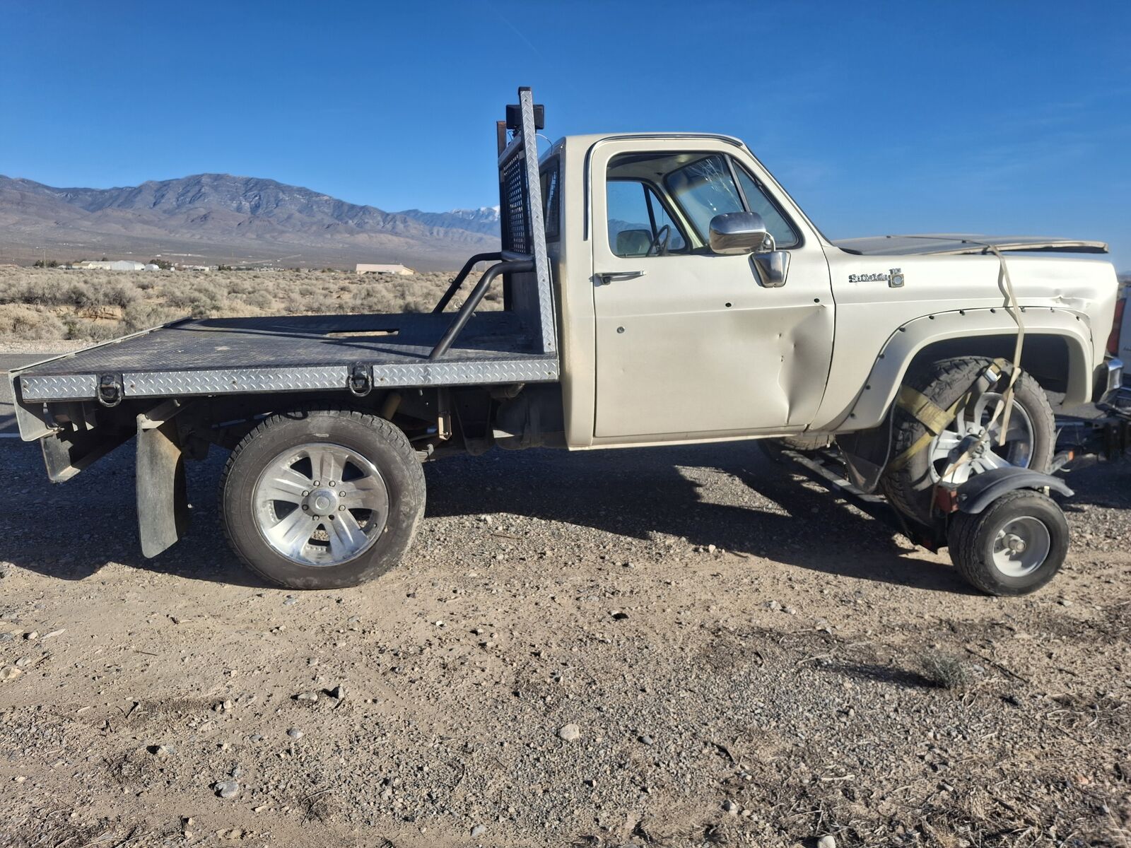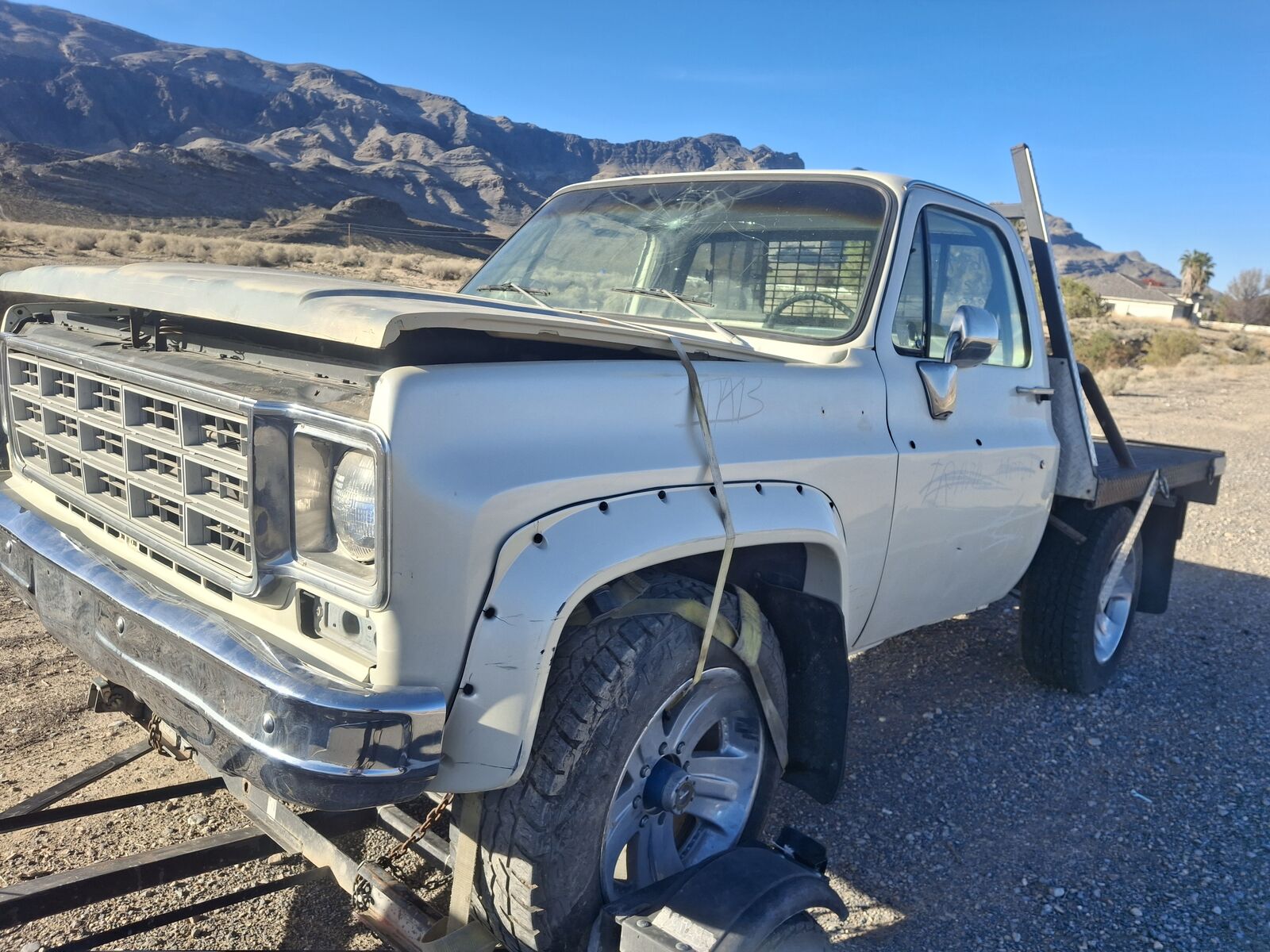SELLING COMPLE FOR PARTS, 3/4 ton, 4x4, short bed, NV. TITLE in my name, RUST FREE, 350 engine is apart, 4 speed manual transmission, very nice flatbed BED, wires are cut, missing parts, SELLING complete, FOR PARTS, the first $2500. gets it, passenger door has a big dent. I have a hood for it, I bought it for my 16-year-old grandson, too much for him to fix. 60 miles from Vegas in Pahrump, NV. CALL/TEXT 920 279 6504 with questions
