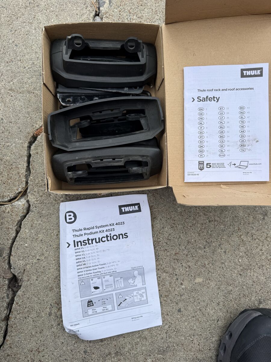 ZelleTitle says it all. These are in great shape, just don't fit my newer vehicle. 4023 feet should fit older BMW X5's and others. This setup new is over $800. Pickup in Park City. Cash or Venmo.