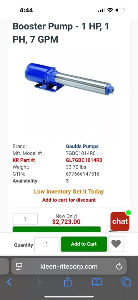Goulds 7GBC1014R0, Booster Pump, Series GB, 1 HP, 115/230 volts, 1 Phase, 16 Stages, 1 NPT Discharge, 7 GPM Best Efficiency Flow, Cast Iron