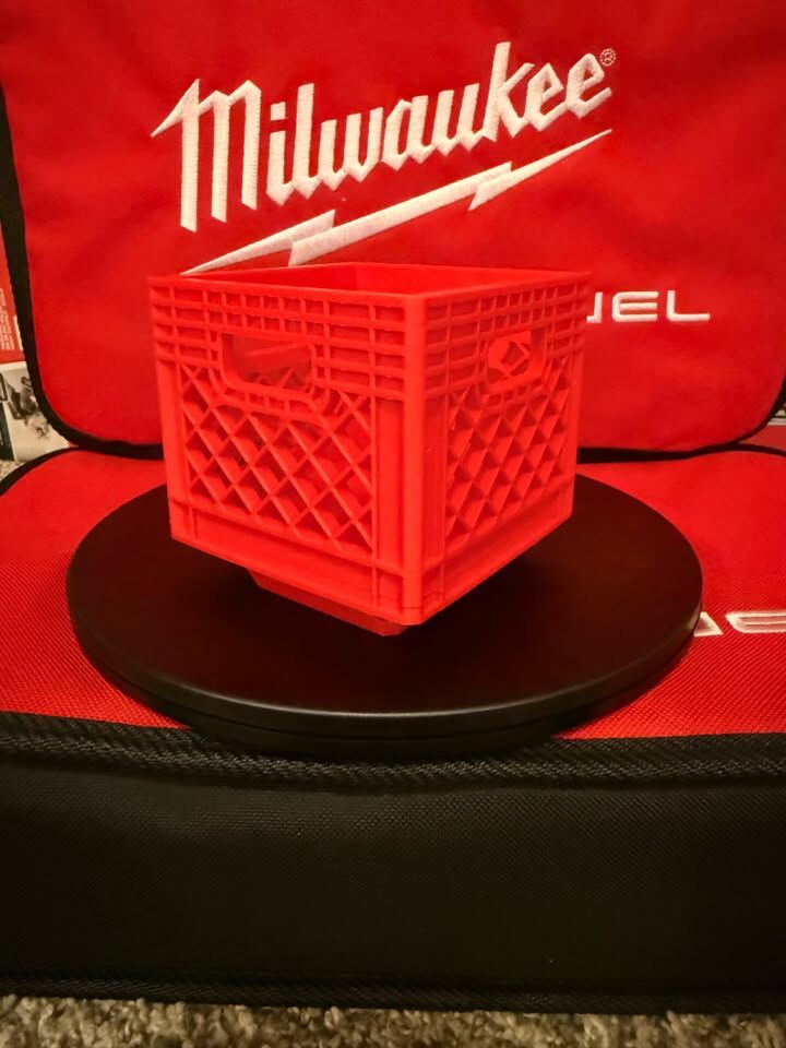 ApplePayCustom 3D printed mini crate designed to fit perfectly onto Milwaukee PACKOUT lids and wall panels. Printed in authentic Milwaukee red to match your PACKOUT system. This compact organizer features 9 cubic inches of interior storage space - perfect for your drink, radio, small parts, fasteners, drill bits, or accessories you need quick access to. The crate design allows air flow while keeping contents contained, and mounts directly to PACKOUT lids or wall-mounted panels using the standard PACKOUT mounting pattern. Made from durable PLA+ filament that's impact-resistant and holds up well to typical workshop use. Great for adding vertical storage to your PACKOUT setup or utilizing empty lid space. Keeps frequently-used small items organized and easily accessible right on top of your toolbox. *Designed by FXD. P rinted right here in Bountiful, UT.