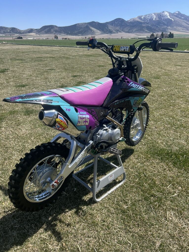 Selling KLX 110L big bore. Under 15 hours on it. Never raced. Well taken care of. Runs really strong. Nothing wrong with it. Just looking to get a trail bike. Would trade for a Tx,xc 250,300cc bike and can put cash on my end for the right deal. Would also maybe trade for talaria or E ride. I don’t want your clapped bike Up to 7k has been put into this bike. NOTHING was missed. It’s an absolute rocket KLX 110L Part list Takegawa 138 big bore +R Head. VM26 Carb, BBr swingarm, BBr front springs and rods. ProTaper Clamps and bars, bigger pegs, full polished FMF exhaust, otp rear brake, extended shifter. Heavy duty clutch, BBr intake. Tall seat. Price is OBO