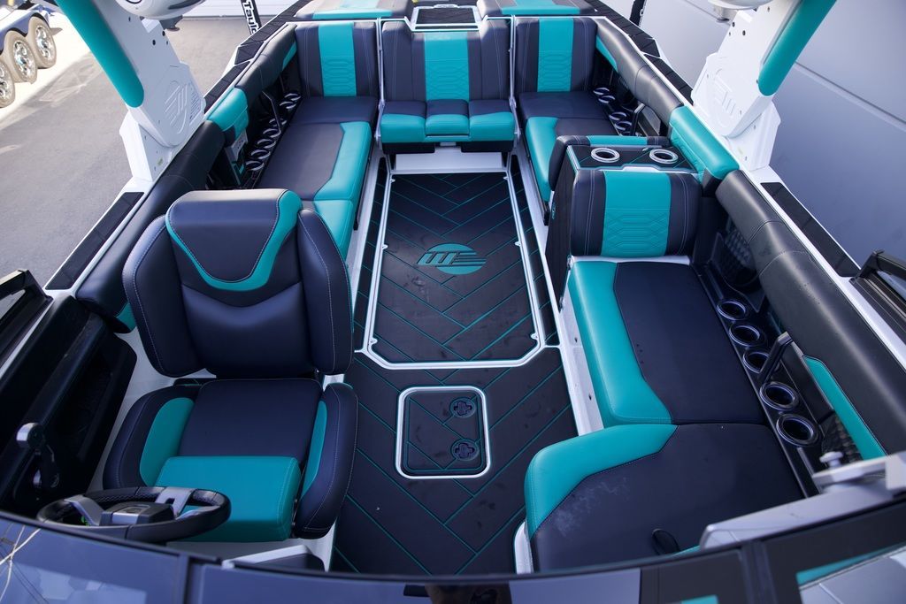 All-new for 2023, the Malibu Wakesetter 26 LSV joins the Luxury Sport V-Drive Series as the biggest boat Malibu has ever made. Sitting at 26 and a half feet long, the 26 LSV is home to all the luxurious amenities you and your 17-person crew need for endless summer lake days. Featuring plush transom seats, the Max-Pivot Seat™, and the port side cooler storage locker, the 26 LSV is just begging to be lounged in after a refreshing afternoon swim at the cove or sunset cruise to dinner. With over 6,000 pounds of ballast and extra customization that comes with Surf Gate® and Power Wedge III®, the 26 LSV leaves plenty of room to play with a big pocket and perfect wave on both sides. With cutting-edge innovations, a spacious new interior, and unbeatable wake & wave performance behind the boat, the 26 LSV offers an on-the-water experience you truly can’t get anywhere else.