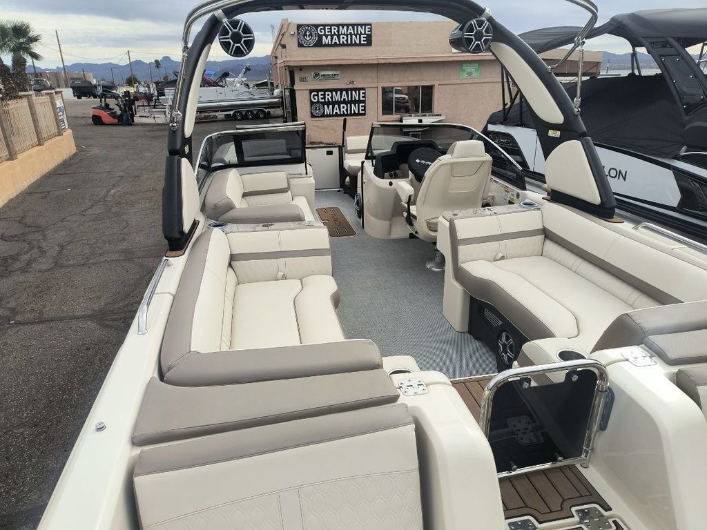 On Hold!... Sale Pending!! On Hold in Lake Havasu Until 2-24-26!....Now In Lake Havasu!!!....New 2026 Avalon Excalibur LTD Twin SS Windshield Model with Mercury Verado 350 V10 Motors (700 HP) and Joystick Operations... Exterior Color Champagne Metallic with Black accents, Ultrafine Cream White with Champagne and Beige Accent Interior, Luna Pearl Custom Flooring, Power Arch with Bimini, Medallion Touchscreen Dash with Garmin 743 XSV GPS, Fusion Premium Sound Package with Transom Remote, 27" Waveglider Triple Tube Performance Rough Water Package, 100 Gallon Fuel Tank, Storage Cover, Triple Axle Trailer and much more.... Germaine Marine Boat Show Special on this Twin Engine Avalon Only $248,000!!! As Equipped, Includes the Trailer!!... Plus Tax, Doc and Registration... Call 928-855-8588 for more details.
