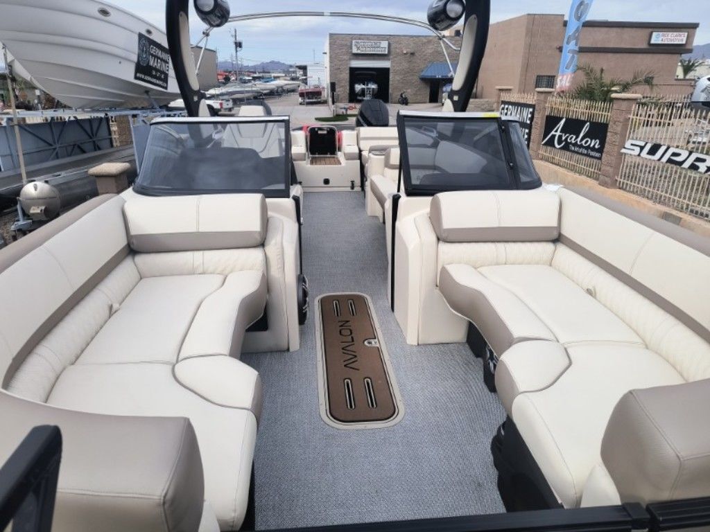 On Hold!... Sale Pending!! On Hold in Lake Havasu Until 2-24-26......Now In Lake Havasu!!!...... New 2026 Avalon Excalibur LTD Twin SS Windshield Model with Mercury Verado 350 V10 Motors (700 HP) and Joystick Operations... Exterior Color Champagne Metallic with Black accents, Ultrafine Cream White with Champagne and Beige Accent Interior, Luna Pearl Custom Flooring, Power Arch with Bimini, Medallion Touchscreen Dash with Garmin 743 XSV GPS, Fusion Premium Sound Package with Transom Remote, 27" Waveglider Triple Tube Performance Rough Water Package, 100 Gallon Fuel Tank, Storage Cover, Triple Axle Trailer and much more.... Germaine Marine Boat Show Specials on this Twin Engine Avalon Only $248,000!!! As Equipped, Includes the Trailer!!!... Plus Tax, Doc and Registration..... Call 928-855-8588 for mare details!!...