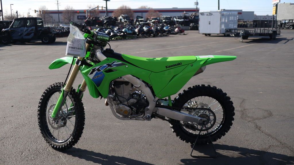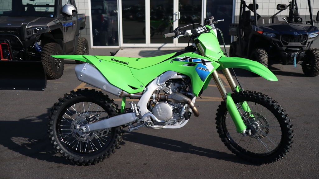 2026 Kawasaki KX™450 THE BIKE THAT BUILDS CHAMPIONS The KX™ legacy represents a long line of champions. The drive to produce more has not slowed down. Our flagship KX™450 motorcycle offers next-level engineering and power to dominate the track. Over the decades, we've learned what it takes to win and stay on top. The KX450 embodies this legacy to the fullest. Features may include: POWER & PERFORMANCE BUILT TO WIN The KX™450 motorcycle engine delivers broad, useable torque and strong, responsive power across the rev range. From the starting gate to the finish line, this race-ready machine is built to stay ahead of the pack. RACE-READY SUSPENSION LEAVE THEM IN THE DUST Take the lead with proven race-winning performance. The highly adjustable Showa suspension package delivers smooth action, firm damping, and contributes to optimal traction. ADVANCED TECHNOLOGY RIDE WITH CONFIDENCE All KX™450 motorcycle advanced controls are streamlined for rider convenience. Kawasaki TRaction Control (KTRC), Power Mode Selection, and Launch Control Mode are available at the push of a button. These features enable riders to quickly adjust power delivery and traction for riding conditions and preference. The KX450 offers superior features designed to inspire confidence. CHASSIS & ERGONOMICS MADE TO SHAVE LAP TIMES Experience the race-winning advantage of a strong and lightweight chassis, agile handling, and exclusive ERGO-FIT® technology. ADDITIONAL: Lightweight aluminum perimeter frame Straight exhaust port and center exhaust ODI lock-on grips Quick-release side cover offers tool-less air filter access Streamlined ergonomics for easy rider movement Coned disc-spring hydraulic clutch
