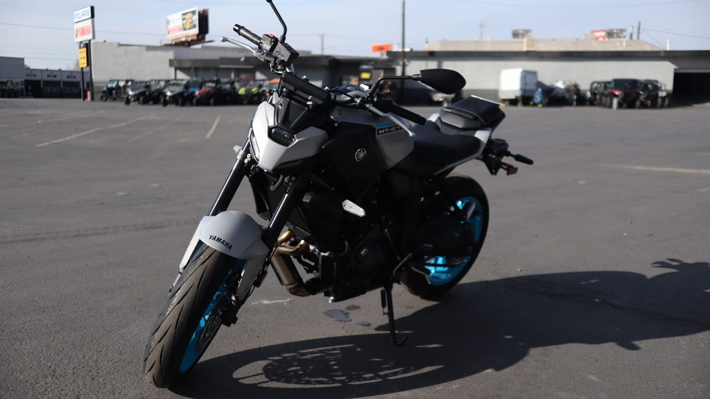2026 Yamaha MT-07 DAWN OF A NEW DARKNESS The new 2025 MT-07 is the highest specification yet, including new radially mounted front brake calipers, 41 mm inverted forks, lightweight SpinForged wheels and striking next-generation MT styling. Features may include: Advanced Twin-Cylinder DOHC Engine The MT-07 features the renowned 689cc liquid-cooled, inline twin cylinder CP2 engine with fuel injection. The fun and characterful CP2 provides both outstanding low- to mid-range torque and strong high-RPM pulling power. Adding to the visceral connection between rider and machine, the MT-07 also features Acoustic Amplifying Technology which harnesses the CP2's induction roar, channeling it to the rider for an enhanced engine soundtrack and feeling of acceleration. Next-Generation Electronic Rider Aids The advanced Yamaha Chip Controlled Throttle (YCC-T) contributes to a more linear power delivery and greater connection between rider and machine, while enabling next-generation electronic aids including Yamaha Ride Control (YRC) with three available throttle maps and switchable Traction Control. YRC includes two quick-select preset modes (SPORT and STREET) along with a customizable YRC mode allowing the rider to match their preferred power delivery to their preferred level of Traction Control. Highly Responsive KYB® Adjustable Suspension An inverted 41mm KYB® front fork offers high levels of control and a planted front-end feel when cornering and braking, all while providing the MT-07 with a more modern look. The linked-type monocross KYB® rear shock is optimized to match the rigidity of the front fork, creating a more sporting ride. Radially Mounted Front Brakes Providing next-level stopping power, the 2026 MT-07 features large twin discs gripped by radially mounted 4-piston brake calipers. The design facilitates strong and consistent braking performance thanks to the increased rigidity, which ensures forces are equally distributed during hard braking. Five-Inch TFT Display with Smartphone Connectivity Riders can link their smartphone to the MT-07's rich, full-color TFT display via Yamaha's free Y-Connect app. Functionality includes the ability to receive message notifications, calls and listen to music (through use of an aftermarket Bluetooth® headset, not provided). Additionally, full turn-by-turn navigation is available through the Garmin® StreetCross app to make each journey easier. Minimalist Next-Generation MT Styling Stripped-back next-generation styling with a minimalist LED headlight unit creates a striking face clearly inspired by the Dark Side of Japan's distinctively modern styling aesthetic. With engineering and styling in perfect harmony, nothing is added to the MT-07 unless it truly enhances the riding experience. The result is a motorcycle which connects to its rider in a way few others can match.
