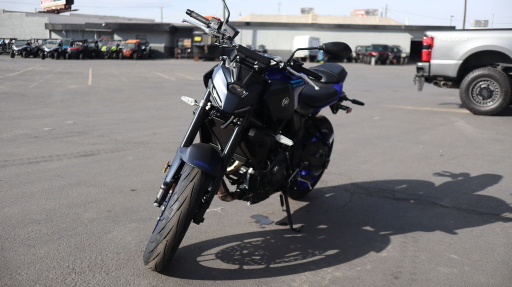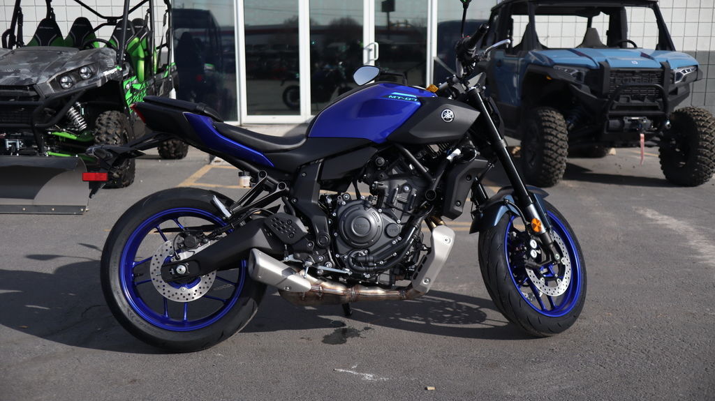 2026 Yamaha MT-07 DAWN OF A NEW DARKNESS The new 2025 MT-07 is the highest specification yet, including new radially mounted front brake calipers, 41 mm inverted forks, lightweight SpinForged wheels and striking next-generation MT styling. Features may include: Advanced Twin-Cylinder DOHC Engine The MT-07 features the renowned 689cc liquid-cooled, inline twin cylinder CP2 engine with fuel injection. The fun and characterful CP2 provides both outstanding low- to mid-range torque and strong high-RPM pulling power. Adding to the visceral connection between rider and machine, the MT-07 also features Acoustic Amplifying Technology which harnesses the CP2's induction roar, channeling it to the rider for an enhanced engine soundtrack and feeling of acceleration. Next-Generation Electronic Rider Aids The advanced Yamaha Chip Controlled Throttle (YCC-T) contributes to a more linear power delivery and greater connection between rider and machine, while enabling next-generation electronic aids including Yamaha Ride Control (YRC) with three available throttle maps and switchable Traction Control. YRC includes two quick-select preset modes (SPORT and STREET) along with a customizable YRC mode allowing the rider to match their preferred power delivery to their preferred level of Traction Control. Highly Responsive KYB® Adjustable Suspension An inverted 41mm KYB® front fork offers high levels of control and a planted front-end feel when cornering and braking, all while providing the MT-07 with a more modern look. The linked-type monocross KYB® rear shock is optimized to match the rigidity of the front fork, creating a more sporting ride. Radially Mounted Front Brakes Providing next-level stopping power, the 2026 MT-07 features large twin discs gripped by radially mounted 4-piston brake calipers. The design facilitates strong and consistent braking performance thanks to the increased rigidity, which ensures forces are equally distributed during hard braking. Five-Inch TFT Display with Smartphone Connectivity Riders can link their smartphone to the MT-07's rich, full-color TFT display via Yamaha's free Y-Connect app. Functionality includes the ability to receive message notifications, calls and listen to music (through use of an aftermarket Bluetooth® headset, not provided). Additionally, full turn-by-turn navigation is available through the Garmin® StreetCross app to make each journey easier. Minimalist Next-Generation MT Styling Stripped-back next-generation styling with a minimalist LED headlight unit creates a striking face clearly inspired by the Dark Side of Japan's distinctively modern styling aesthetic. With engineering and styling in perfect harmony, nothing is added to the MT-07 unless it truly enhances the riding experience. The result is a motorcycle which connects to its rider in a way few others can match.