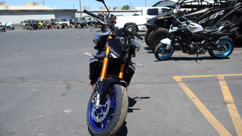2026 Yamaha MT-09 SP MASTER OF DARKNESS Featuring exclusive special edition coloring, premium KYB® and Öhlins® suspension, and top-shelf Brembo® brakes, experience the class-dominating middleweight master born from the Darkness. Features may include: Powerful 890cc Three-Cylinder Engine Yamaha's renowned 890cc liquid-cooled CP3 engine is light, powerful and provides a thrilling wave of torque from low RPMs. A combination of carefully tuned induction sound and distinctive crossplane triple exhaust note provides a resonance which only heightens the feeling of acceleration. Throttle valves are governed by the Yamaha Chip Controlled Throttle (YCC-T) system enabling finer actuation and precise control. Advanced Six-Axis IMU The MT-09 SP features an advanced six-axis Inertial Measurement Unit (IMU) that matches the base performance of proven IMU in the YZF-R1 Superbike. Data collected from the IMU and wheel speed sensors enable a high-tech suite of rider aids including a four-mode Traction Control System (TCS), Slide Control System (SCS), front wheel Lift Control System (LIF) and a two-mode Brake Control System. Each of these systems can be turned off and Traction Control, Slide Control and Lift Control can have their levels of intervention adjusted to preference. Lightweight CF Die-Cast Aluminum Frame The MT-09 SP features an advanced, lightweight aluminum frame refined to showcase the MT's signature agility. To ensure both straight-line stability and handling performance, the balance of longitudinal, lateral and torsional rigidity are all carefully considered and finely tuned. The frame is manufactured using Yamaha's groundbreaking controlled fill (CF) die casting technology which contributes to its light weight. High-Spec SP Suspension Premium SP-exclusive suspension brings Supersport-level handling and precision to the Hyper Naked class. The 41mm DLC coated KYB® forks and O–hlins® rear shock feature a higher spring rate offering outstanding stability during more spirited riding. Set-up can be fine tuned to suit a variety of different riding situations with the forks fully adjustable for preload, rebound, high- and low-speed compression damping, while the fully adjustable Öhlins® shock is equipped with a remote preload adjuster to enable quick and easy changes. Brembo® Stylema Calipers & Radial Master Cylinder The MT-09 SP boasts premium-spec Brembo® Stylema monoblock brake calipers paired with a Brembo® radial master cylinder and large 298mm dual front discs for the ultimate in stopping power and finger-tip control. Five-Inch TFT Display with Smartphone Connectivity Riders can link their smartphone to the rich, full-color TFT display via Yamaha's free Y-Connect app to receive message notifications, calls and listen to music (through use of an aftermarket Bluetooth® headset, not provided). Additionally, full turn-by-turn navigation is available through the Garmin® StreetCross app to make each journey easier.
