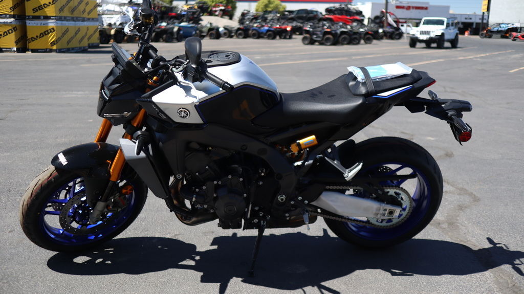 2026 Yamaha MT-09 SP MASTER OF DARKNESS Featuring exclusive special edition coloring, premium KYB® and Öhlins® suspension, and top-shelf Brembo® brakes, experience the class-dominating middleweight master born from the Darkness. Features may include: Powerful 890cc Three-Cylinder Engine Yamaha's renowned 890cc liquid-cooled CP3 engine is light, powerful and provides a thrilling wave of torque from low RPMs. A combination of carefully tuned induction sound and distinctive crossplane triple exhaust note provides a resonance which only heightens the feeling of acceleration. Throttle valves are governed by the Yamaha Chip Controlled Throttle (YCC-T) system enabling finer actuation and precise control. Advanced Six-Axis IMU The MT-09 SP features an advanced six-axis Inertial Measurement Unit (IMU) that matches the base performance of proven IMU in the YZF-R1 Superbike. Data collected from the IMU and wheel speed sensors enable a high-tech suite of rider aids including a four-mode Traction Control System (TCS), Slide Control System (SCS), front wheel Lift Control System (LIF) and a two-mode Brake Control System. Each of these systems can be turned off and Traction Control, Slide Control and Lift Control can have their levels of intervention adjusted to preference. Lightweight CF Die-Cast Aluminum Frame The MT-09 SP features an advanced, lightweight aluminum frame refined to showcase the MT's signature agility. To ensure both straight-line stability and handling performance, the balance of longitudinal, lateral and torsional rigidity are all carefully considered and finely tuned. The frame is manufactured using Yamaha's groundbreaking controlled fill (CF) die casting technology which contributes to its light weight. High-Spec SP Suspension Premium SP-exclusive suspension brings Supersport-level handling and precision to the Hyper Naked class. The 41mm DLC coated KYB® forks and O–hlins® rear shock feature a higher spring rate offering outstanding stability during more spirited riding. Set-up can be fine tuned to suit a variety of different riding situations with the forks fully adjustable for preload, rebound, high- and low-speed compression damping, while the fully adjustable Öhlins® shock is equipped with a remote preload adjuster to enable quick and easy changes. Brembo® Stylema Calipers & Radial Master Cylinder The MT-09 SP boasts premium-spec Brembo® Stylema monoblock brake calipers paired with a Brembo® radial master cylinder and large 298mm dual front discs for the ultimate in stopping power and finger-tip control. Five-Inch TFT Display with Smartphone Connectivity Riders can link their smartphone to the rich, full-color TFT display via Yamaha's free Y-Connect app to receive message notifications, calls and listen to music (through use of an aftermarket Bluetooth® headset, not provided). Additionally, full turn-by-turn navigation is available through the Garmin® StreetCross app to make each journey easier.