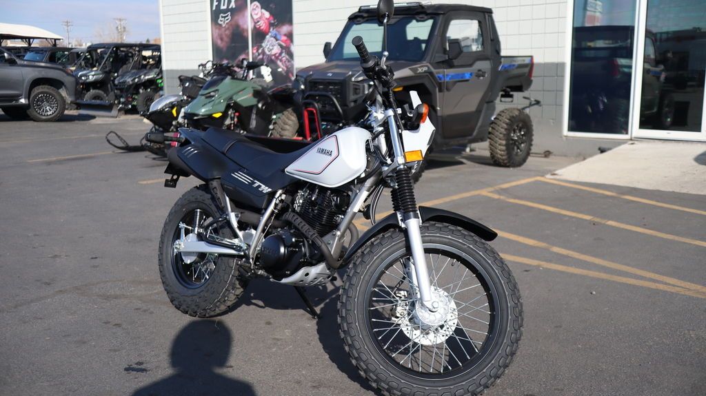 2026 Yamaha TW200 THE DO-IT-ALL DUAL SPORT Adaptable and comfortable with fat tires, a low seat and a smooth ride makes it a practical do-it-all, dual purpose machine. Features may include: ENGINE Torquey Powerplant The strong-pulling 196cc air-cooled, four-stroke single delivers torquey low- and mid-range power that's perfectly suited for off-road exploring. Five-Speed Transmission A smooth-shifting five-speed transmission with manual clutch puts usable power to the ground for maximum on- and off-road performance. Smooth, Counterbalanced Engine An internal engine counterbalancer keeps vibrations down for greater all-day comfort. CHASSIS/SUSPENSION Plush, Long-Travel Suspension A 33mm telescopic front fork with 6.3 inches of travel soaks up the bumps for a plush ride. Terrain-Conquering Tires Fat 130/80-18 front and 180/80-14 rear tires provide excellent traction, and control to make conquering all types of challenging terrain easy and fun. Lightweight Swingarm Lightweight box section swingarm and single rear shock with 5.9 inches of travel enhance handling and overall comfort both on- and off-road. ADDITIONAL FEATURES Comfortable Saddle Long, two-tone, motocross-style seat creates a balanced riding position for optimal rider movement and comfort. Protective Fenders The durable and wide front fender keeps water, mud and dirt off the rider. Passenger-Ready Spacious seat and passenger foot pegs provide two-up riding capability.