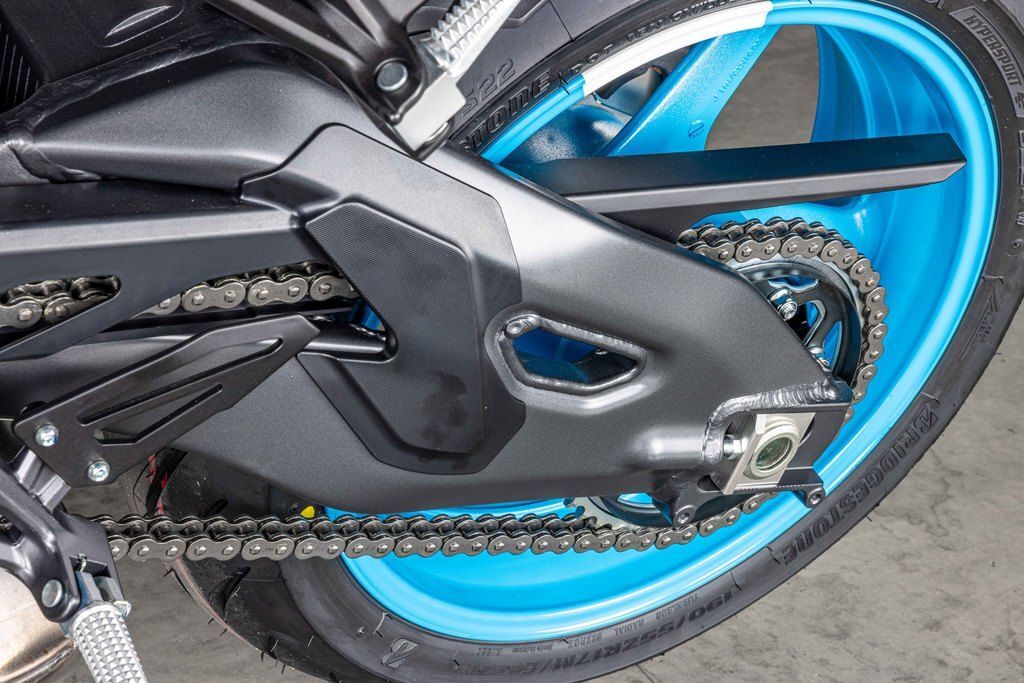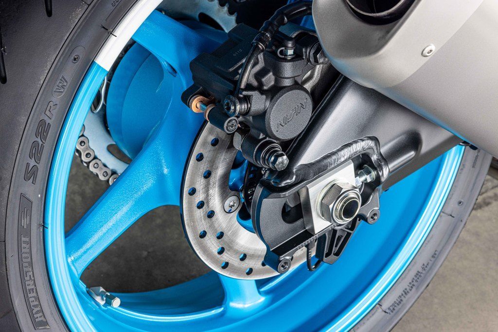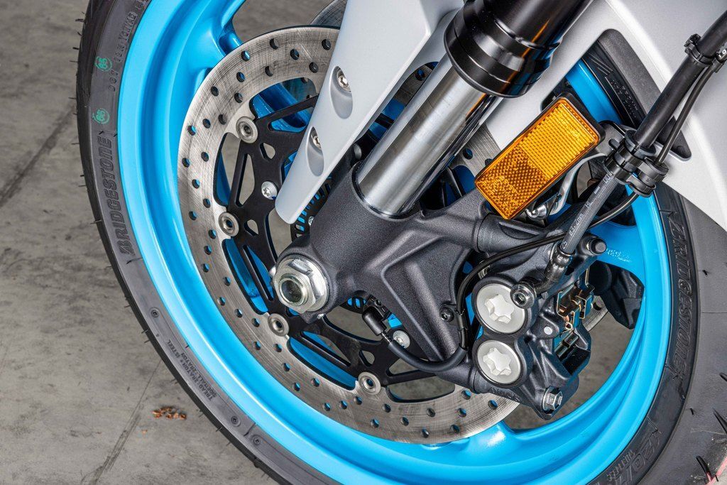 To further enhance the crossplane CP4 engine's distinctive soundtrack, the air box has three differing-length intake ducts tuned to resonate harmoniously at varying engine speeds to create a unique intake roar that enhances the riding experience. Sound is further heightened by Acoustic Amplifier Grilles positioned on the front left and right of the fuel tank, transmitting this tuned induction soundtrack directly to the rider, adding to the thrill when opening the throttle.