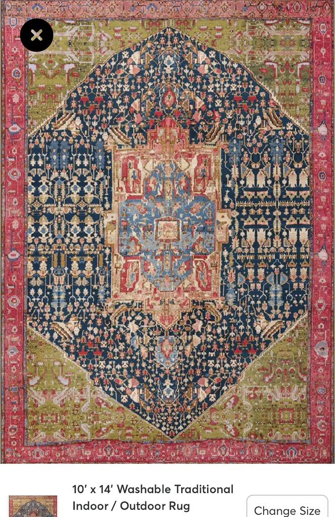 10 x 14 washable traditional rug. Indoor / outdoor.