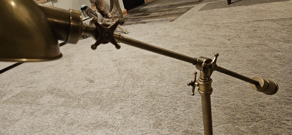 Looks great, works great. Base is 16" tall. Arm is 33" long.