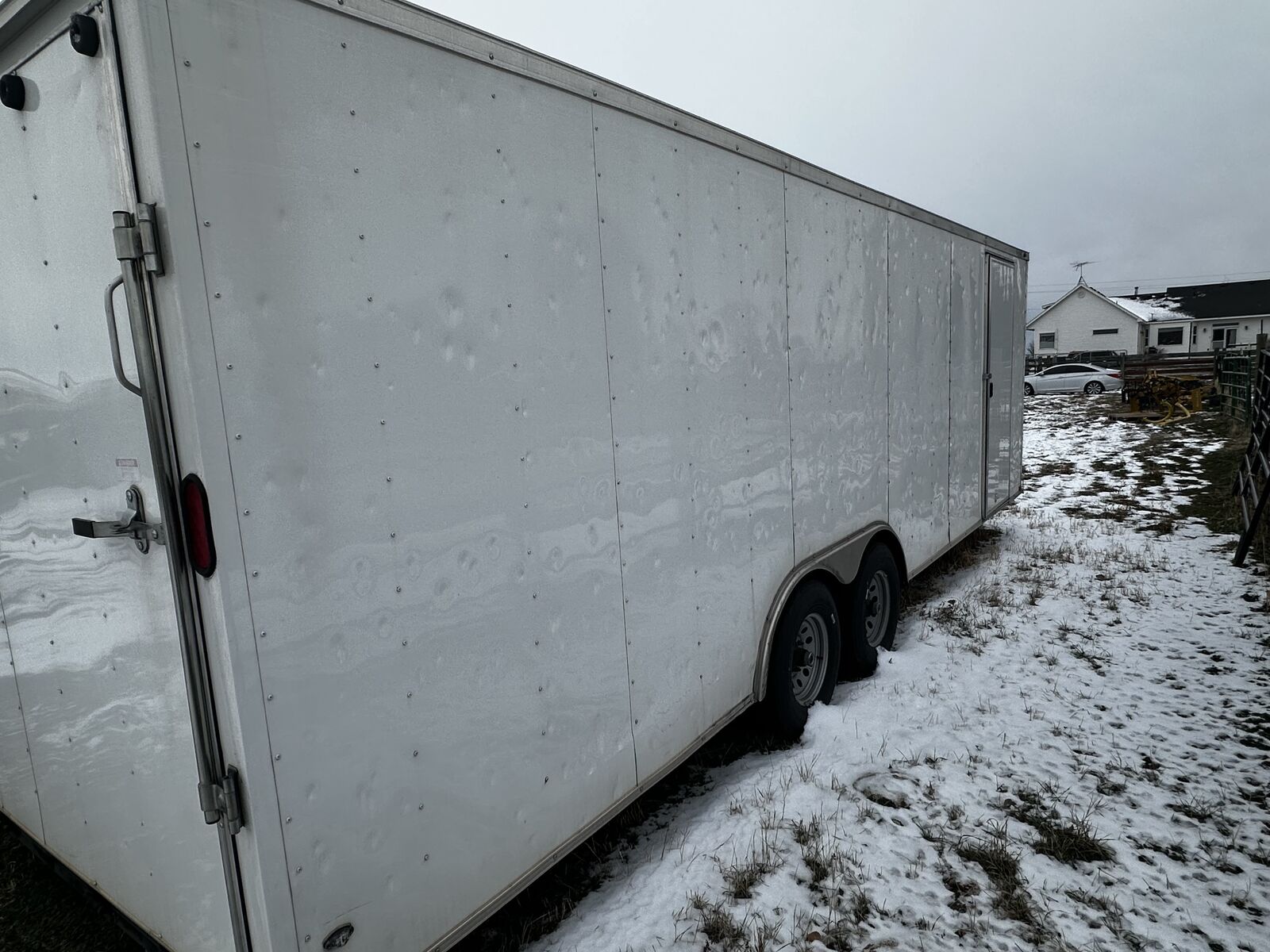 Great trailer and clean. Pulls nice, made two trips from Southern Arizona to Idaho Falls. Has hail damage but no leaks. Have new panels for the trailer which come with it if you want to replace the hail damaged parts.