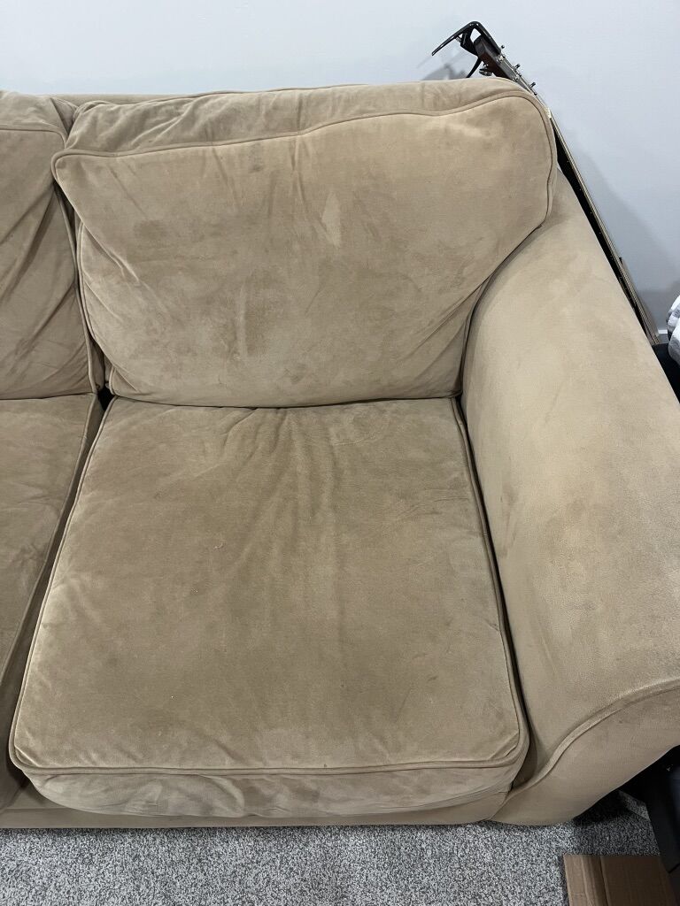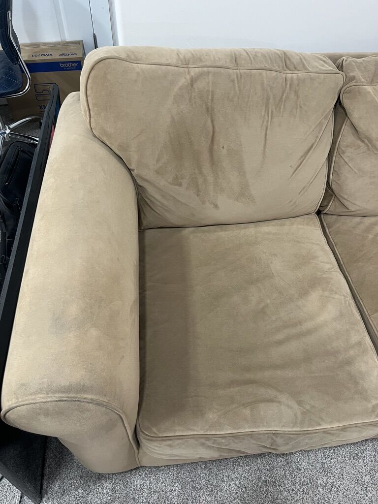 ApplePayWell loved two seat couch. There are some small imperfections, but no tears or real damage. This couch is super comfy and soft. Come grab it and I’ll help you get it into your truck or trailer!