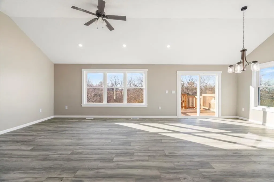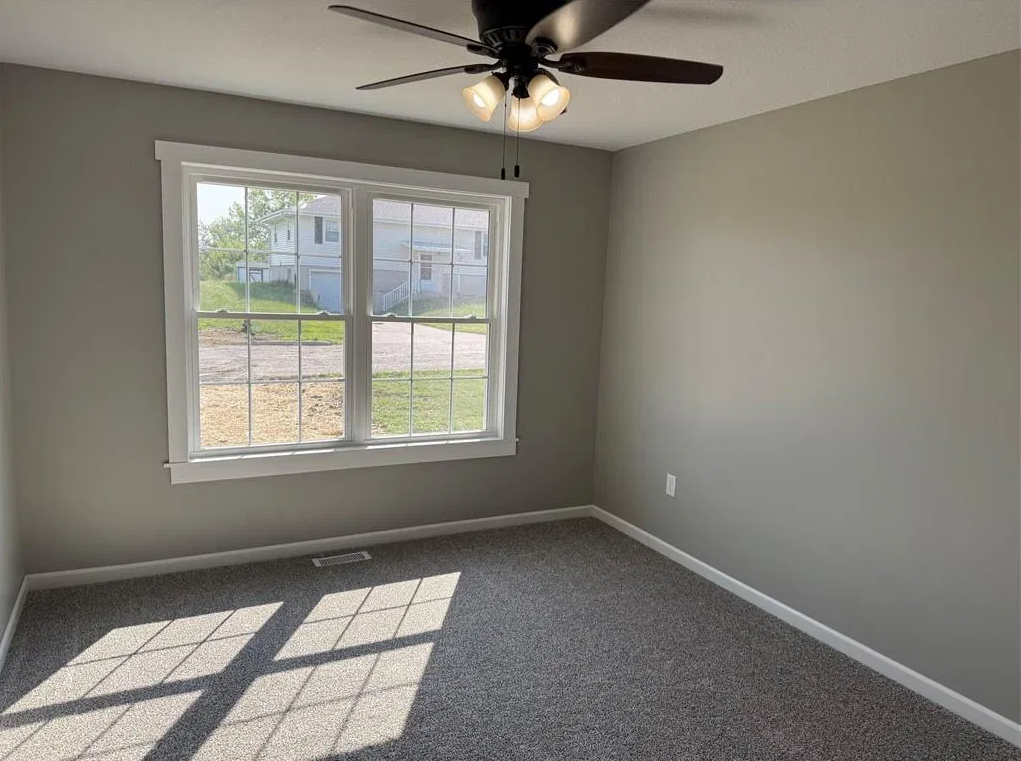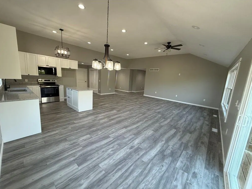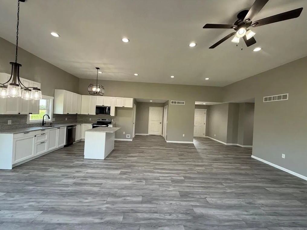 Looking for an affordable new build? This 3-bedroom, 2-bath home is full of modern updates, featuring neutral paint throughout, recessed lighting, and stylish fixtures. Situated on a 1/2-acre lot, the property offers a great location and a large deck with peaceful views. The primary suite includes a spacious bathroom with a soaker tub and walk-in shower. Two additional bedrooms share a well-appointed hall bath. A pantry and laundry room add convenience, while the 2-car garage and cement driveway complete this beautiful home. Great neighborhood in a rural town just 1 hour North of Kansas City.