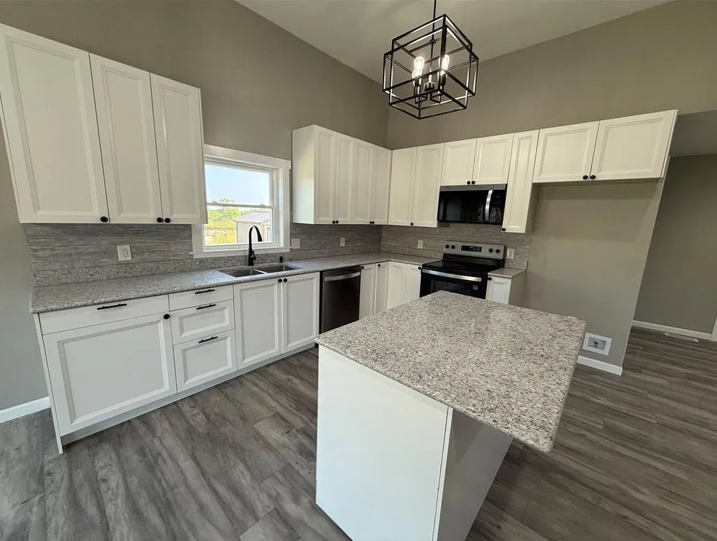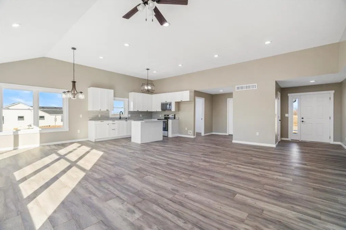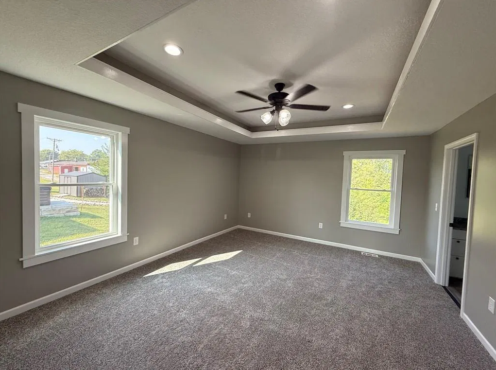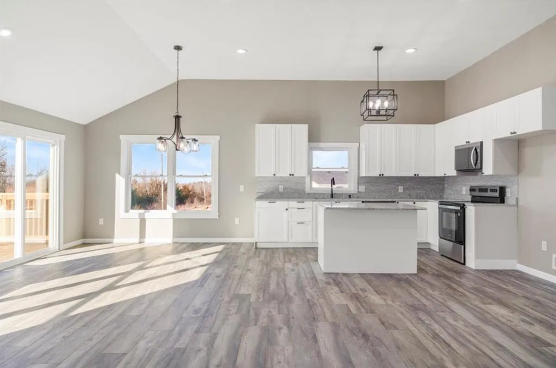 Looking for an affordable new build? This 3-bedroom, 2-bath home is full of modern updates, featuring neutral paint throughout, recessed lighting, and stylish fixtures. Situated on a 1/2-acre lot, the property offers a great location and a large deck with peaceful views. The primary suite includes a spacious bathroom with a soaker tub and walk-in shower. Two additional bedrooms share a well-appointed hall bath. A pantry and laundry room add convenience, while the 2-car garage and cement driveway complete this beautiful home. Great neighborhood in a rural town just 1 hour North of Kansas City.