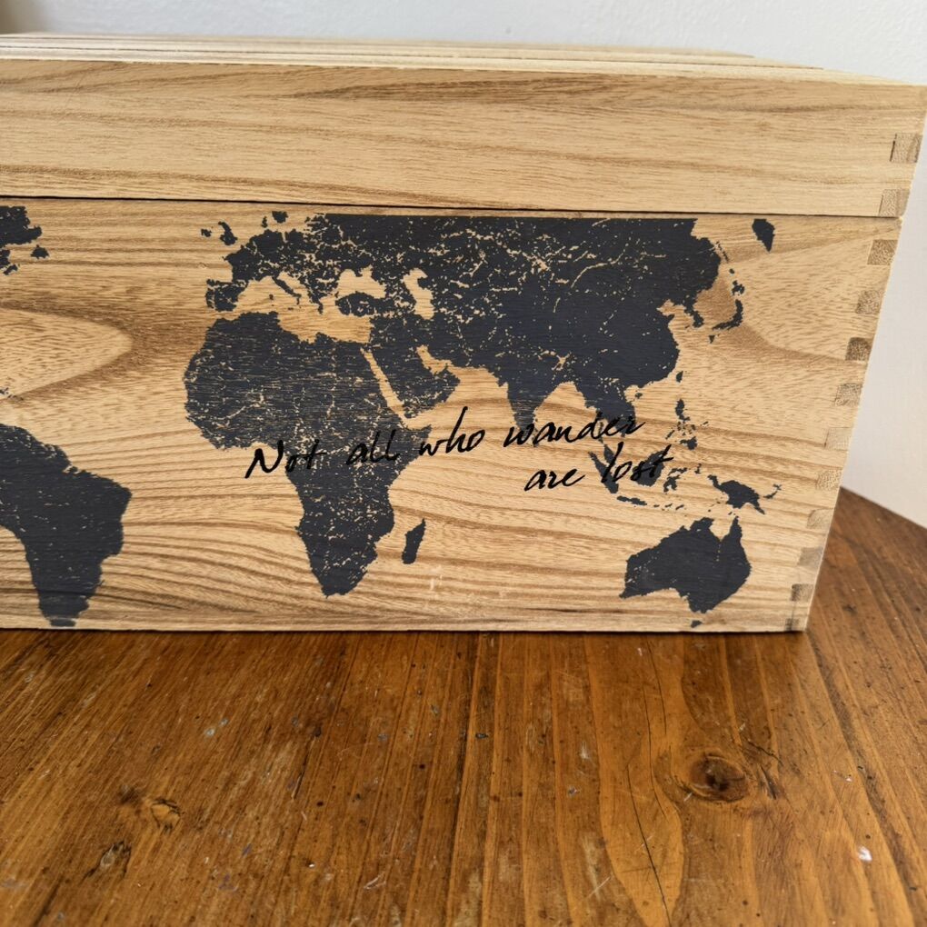 Wooden Keepsake Memory Box World Map Not all who wander are lost