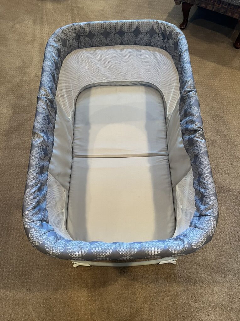 Almost new bassinet. Folds for storage. 3 bassinet sheets.