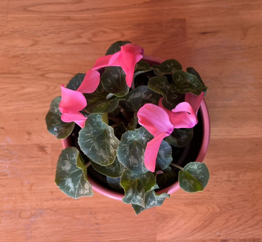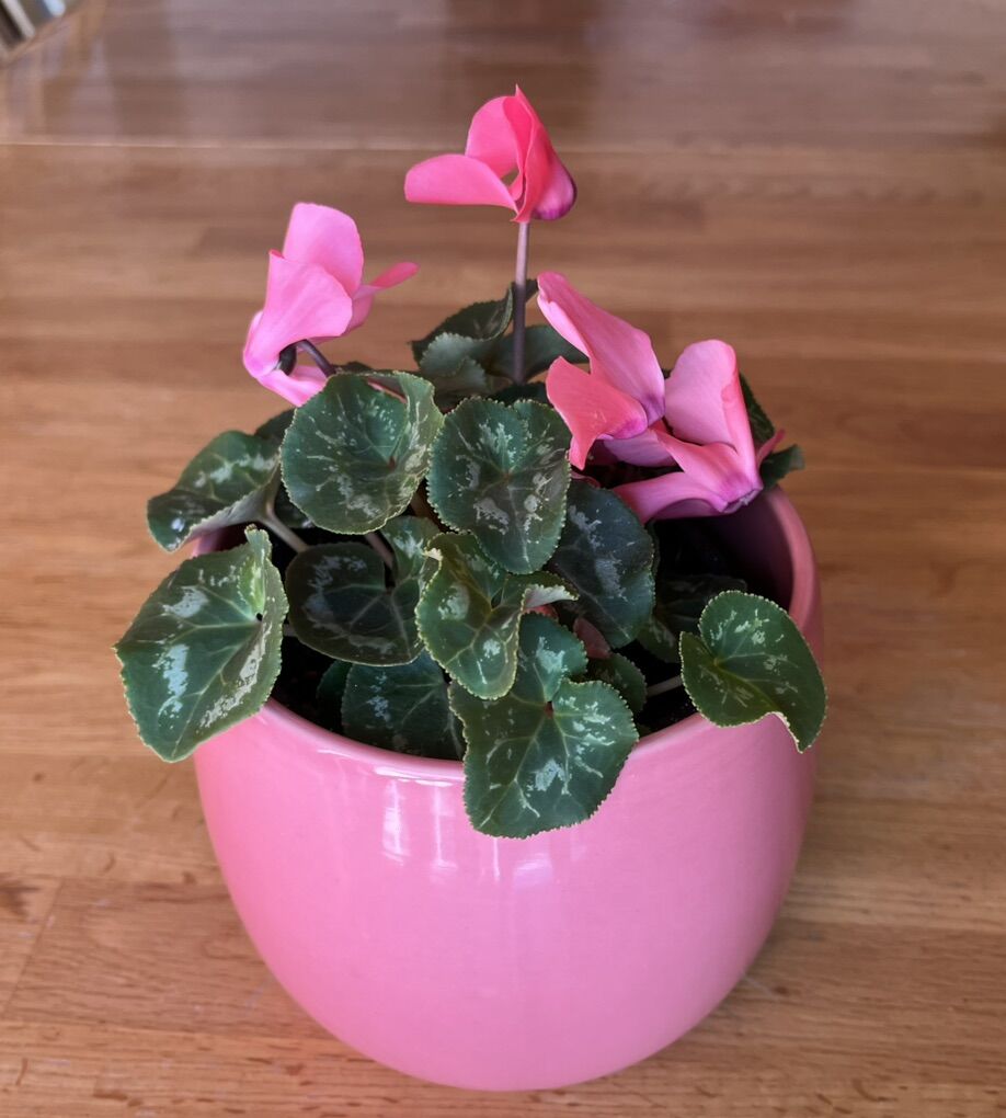 VenmoEasy pet: up to 6” tall blooming bright pink dwarf Cyclamen plant/flower. Sits in 5” x 5” pink porcelain planter. Great addition to any apartment or office setting. $15.