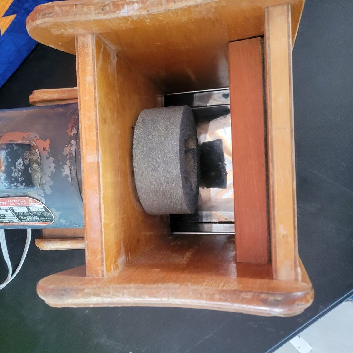 motor turns, missing 1 of the stones and the part to pour the wheat in.