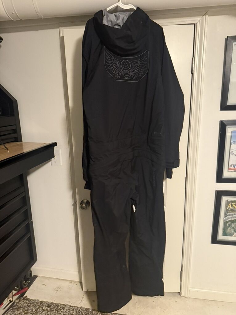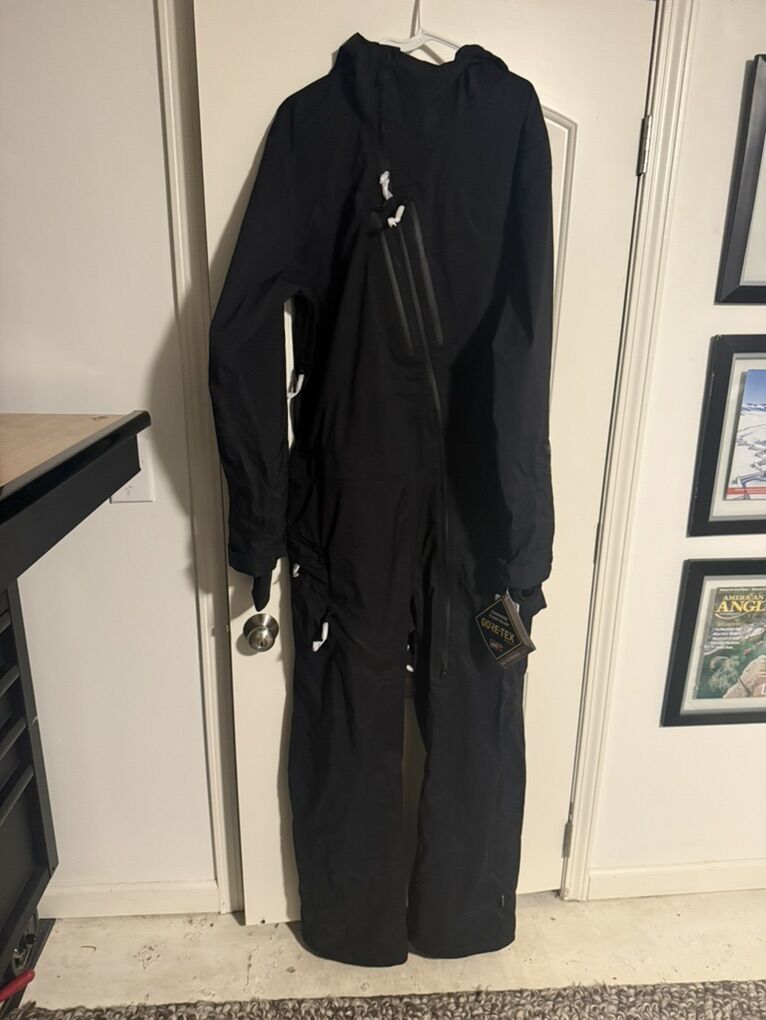 A Gore-Tex manifestation of nomadic journeyman Jamie Lynn’s mind, this baggy one-piece suit takes the utilitarian functionality of a rugged workwear coverall and blends it with modern materials for the mountains, morphing a jumpsuit into a wearable piece of artistic expression ideal for some deep days. Its asymmetrical zipper and prominent artwork by Jamie himself create an unmistakable piece approved by one of the greats. Features : Men's snow jumpsuit Waterproof/Breathability Rating: GORE-TEX Guaranteed to Keep You Dry™ GORE-TEX 3-Layer Stretch C-KNIT™ Fully Taped Seams Standard Fit YKK® AquaGuard® Water Repellent Zippers Asymmetrical Front Main Zipper Hidden Toggle Cinch Hood Peripheral Hood Adjustment Goggle Clips Super Suede Chin Guard Mesh Lined Zippered Vents V-Science 2 Way Cuff System Lycra Hand Gaiters 420 Organizational Pockets Left Sleeve Zippered Pass Pocket Goggle Pocket Specialty Ticket Ring Whistle Zipper Pull Tricot Lined Hand Pockets Adjustable Inner Waistband Drop Seat Zipper Stretch Boot Gaiter with Lace Hook Leg Pocket Jamie Lynn Specialty Art Detail V.Co-Op Product with Athlete Jamie Lynn