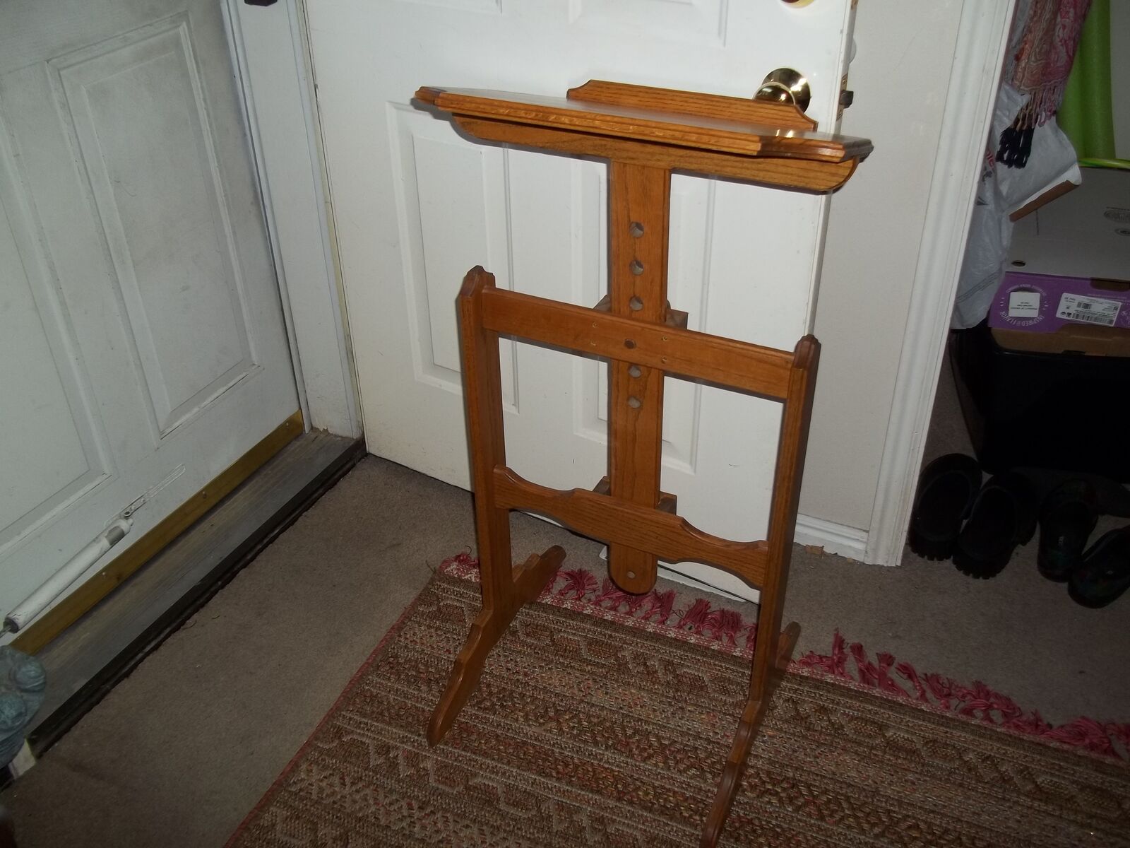 Solid oak construction & adjustable height with wood turn screw