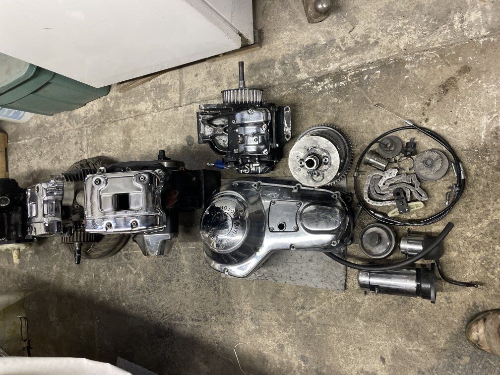 servocar frame, rear end , ,nuckle head ,panhead , shovel or evo will fit in frame, have 2 evo bottom breathers and 5 spd tranny's and other parts ..... calls only no tex $ cash only
