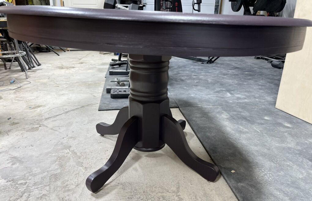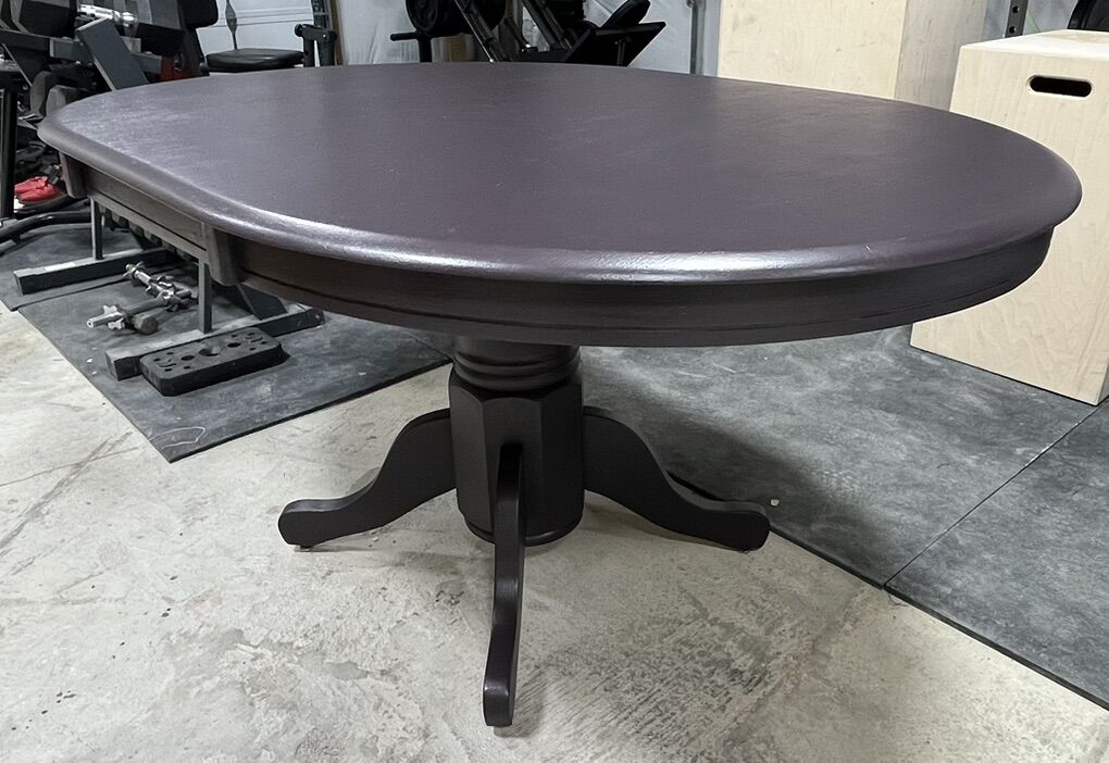 Venmo$95 OBO. Wood dining table in very good/like-new condition. Recently painted Black Toffee with a smooth satin finish. Has a purplish hue in different lighting. Sturdy pedestal base and clean overall… See More