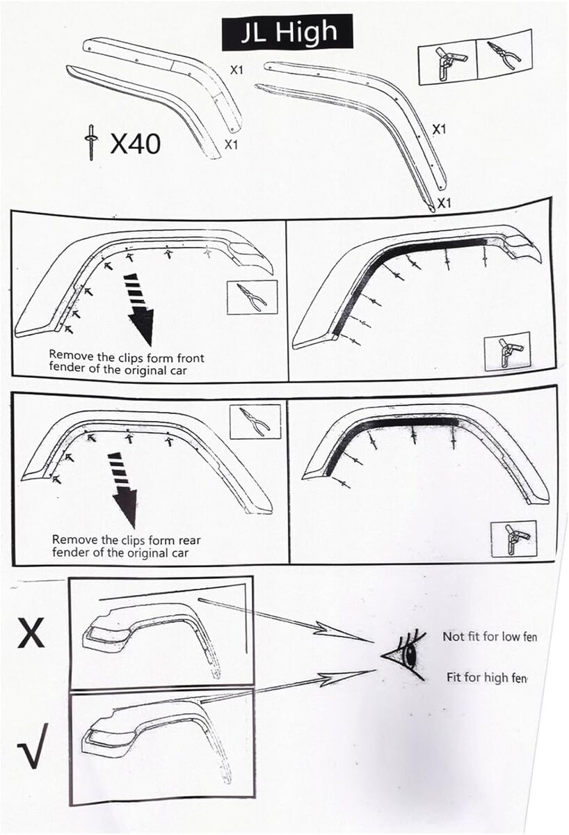 About this item - 2018 2019 2020 2021 2022 2023 2024 Wrangler JL JLU Rubicon Front & Rear Fenders, Fender Liner Extension Protector, Off-Road Wheel Fender Liner Set (includes 2 front driver fenders and 2 passenger side fenders)