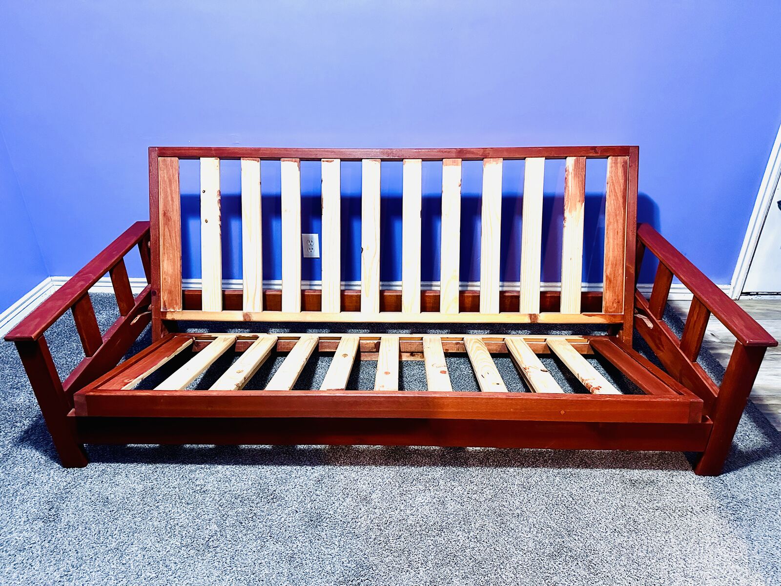 GooglePayWood Futon Set that will stand the test time! It is incredibly sturdy and durable with solid hard wood throughout to withstand frequent wear and tear.