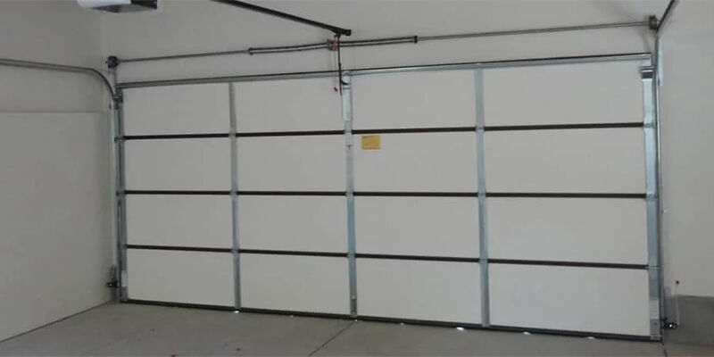 New in the packaging 16ft x 7ft garage door. Color is White. Insulation with vinyl backing. Insulation R Value is 6.5. Comes with panels, tracks, springs and all hardware. *does not include installation