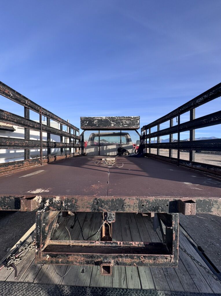 Universal fit 12’ long 8’ wide flatbed, flat bed. Straight frame rails under bed 34” to outside of frame rails. Two headache mounted tool boxes, and an underbody tool box. Steel deck on bed. Great shape, won’t find a better deal! Call or text 4358406688 The truck is also for sale/ parting out. 89 f450, 10 lug axles, 2wd 460, manual transmission, transmission is gone. Check other ads for parts F250, f350,f450,f550, Cummins, power stroke, duramax, dually, dooly, service bed, service body, utility bed, utility body