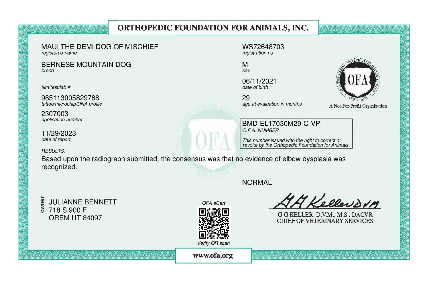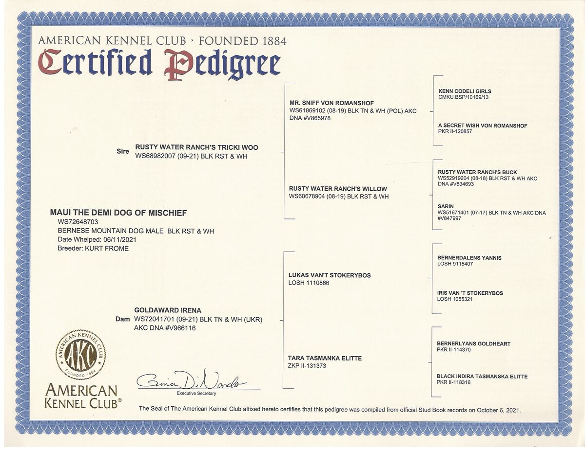 ZelleMaui is an exceptional AKC registered Bernese Mountain Dog available for stud to approved females. He has a wonderful, steady temperament- classic Bernese personality that is affectionate, confident, and easy to work with.