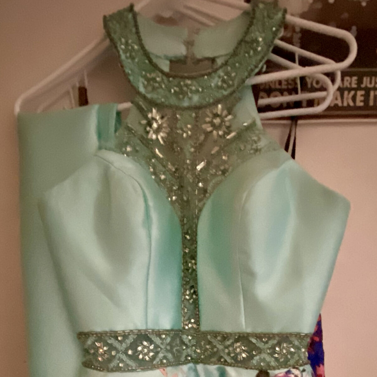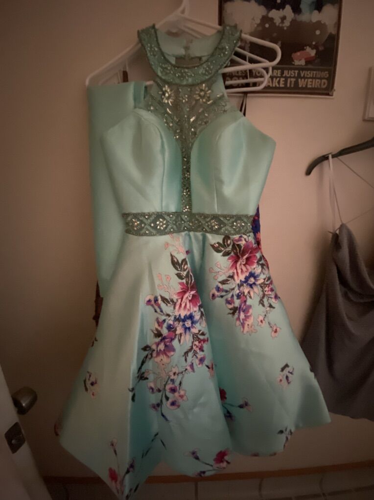 GooglePayTurn heads in this stunning aqua floral cocktail dress by “Let’s”, worn just once and in excellent condition! It’s a size Small, very clean and ready to make a splash at your next event.