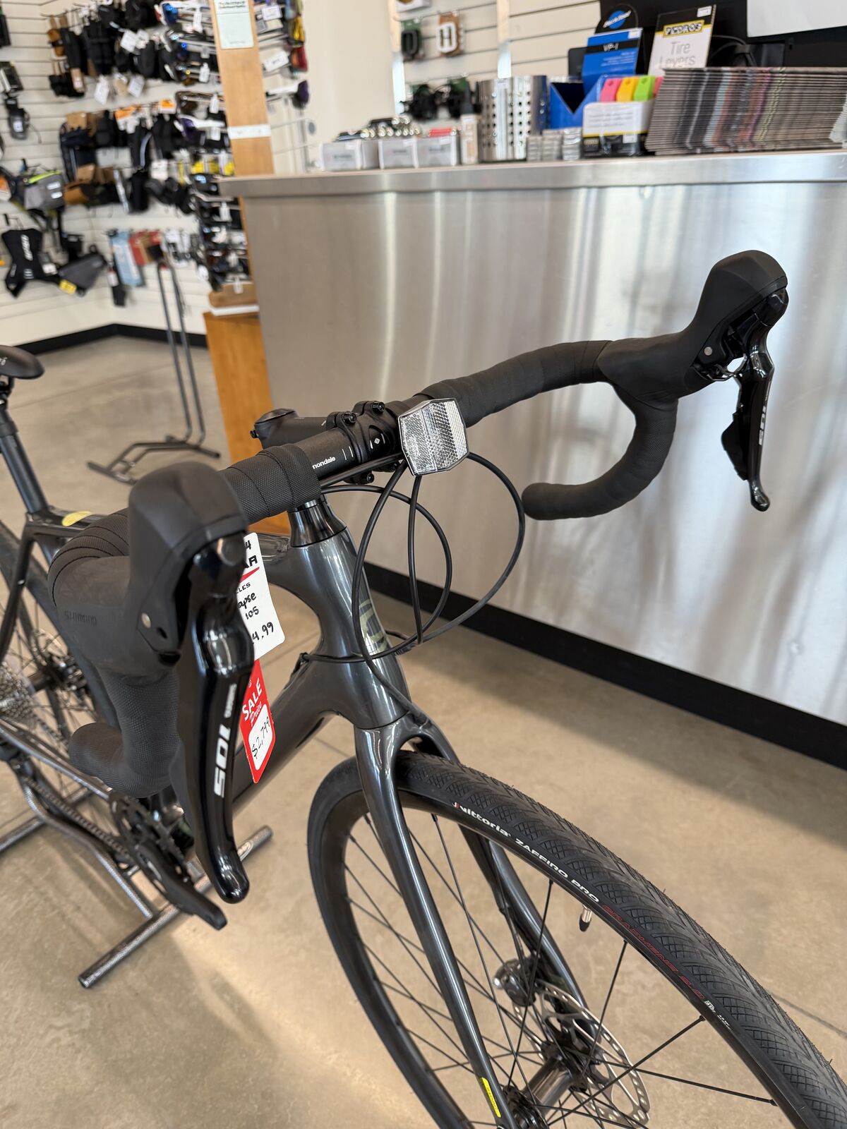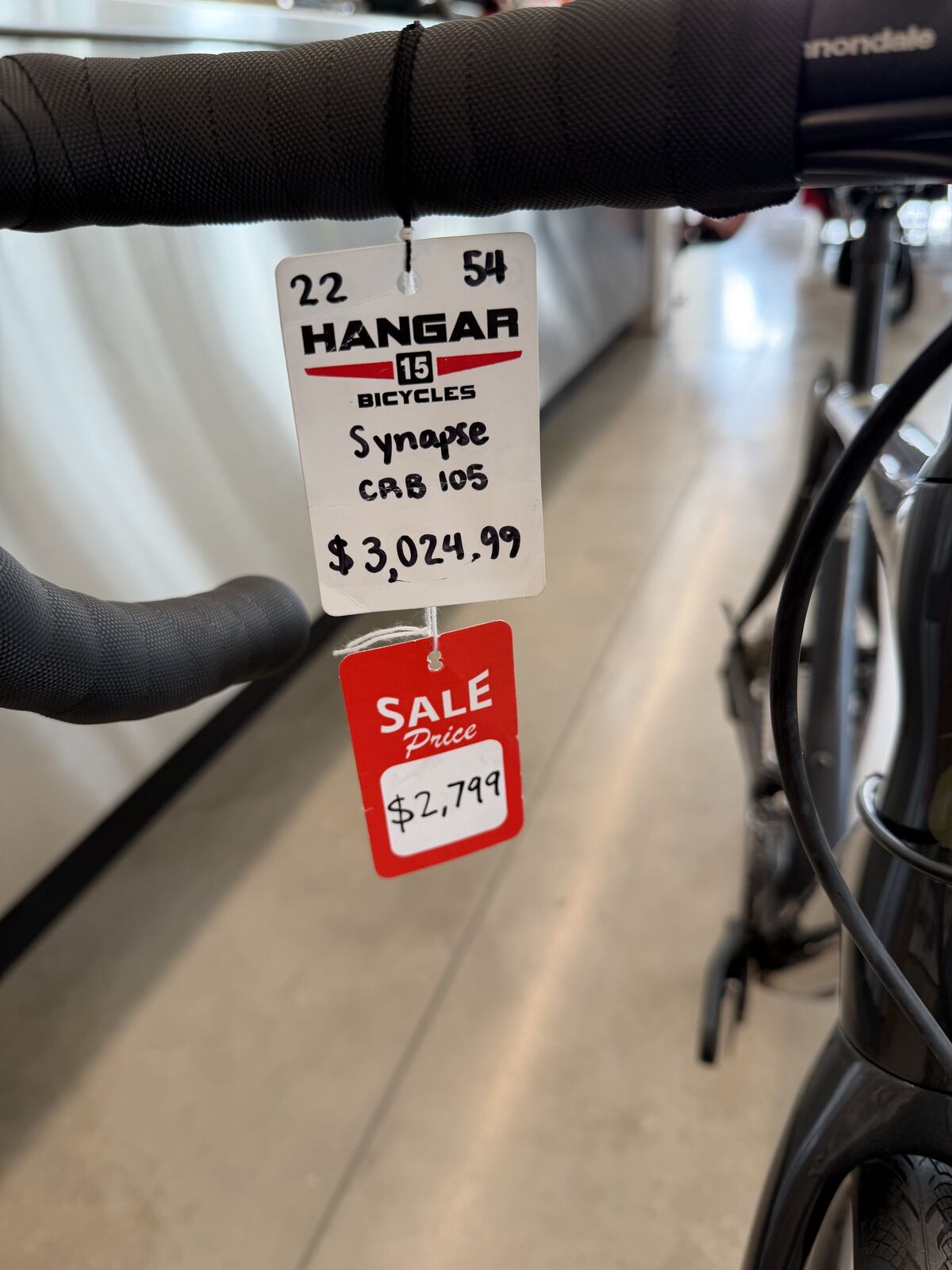 This is a brand new Cannondale Synapse Carbon 105. Currently on sale. (MSRP: $3,024, Sale: $2,799). Bike comes with Cannondales full warranty. A road bike that's light, stiff, fast, and surprisingly comfortable. This bike is available in size 54 cm which fits people from 5' 7" - 5' 11". Feel free to come on in and give this bike a test ride at Hangar 15 Bicycles located in Lehi, Utah. If you have any questions please give us a call at 801-901-6370! We accept cash or credit card.