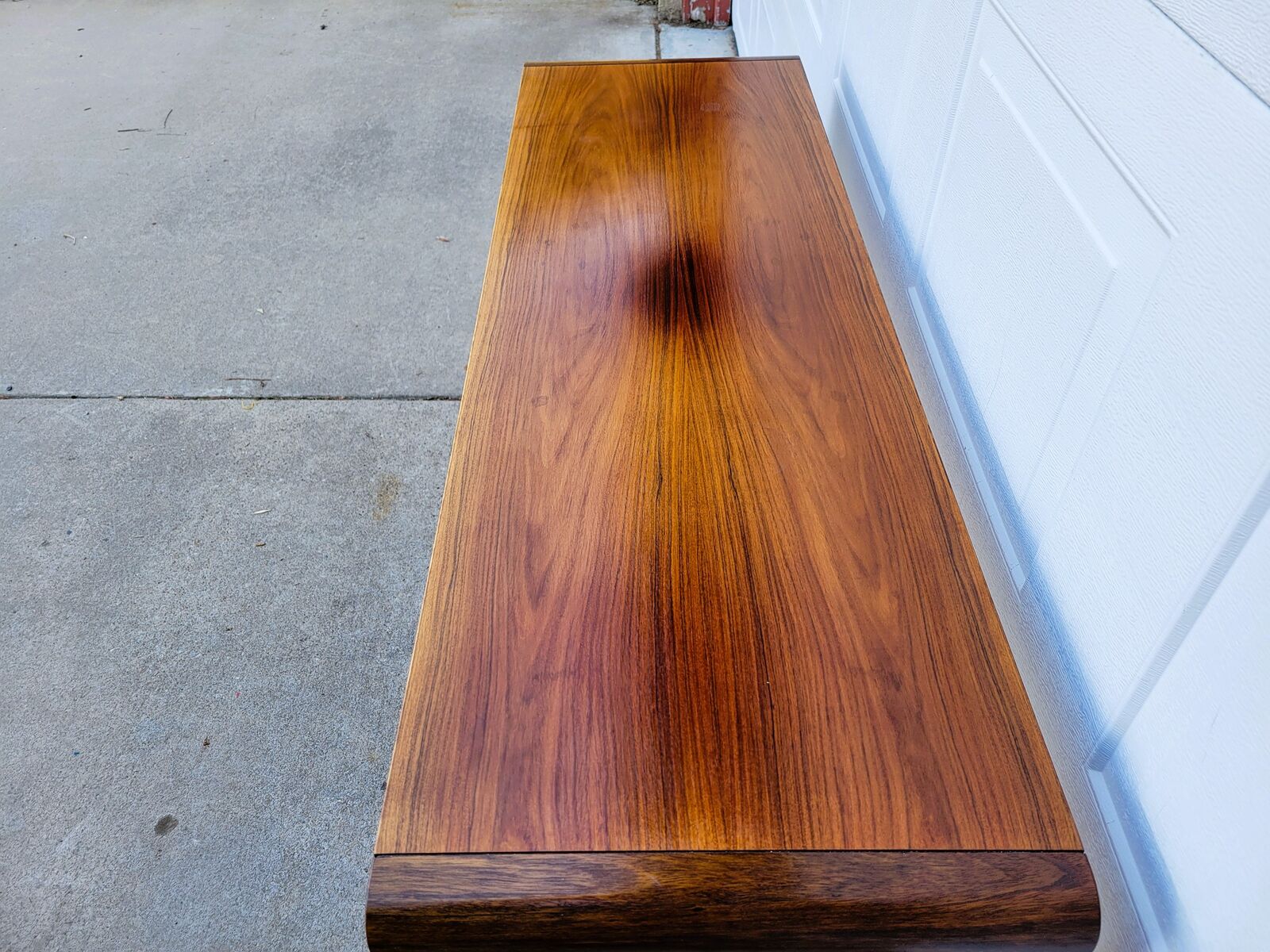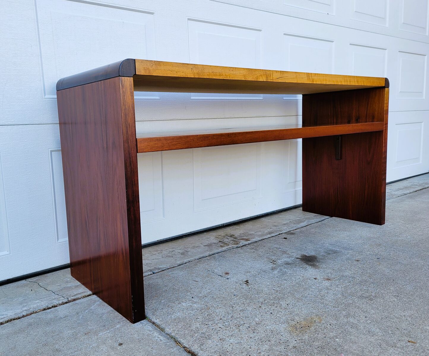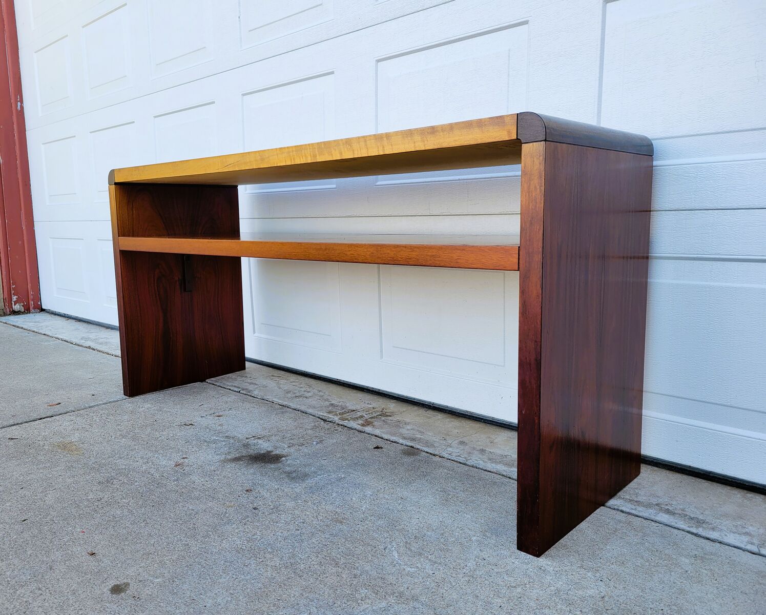 VenmoThis is a gorgeous rosewood piece that can be used in the dining area, as an entryway table or behind a sofa, stereo component rack, etc. Very solid and very heavy. Minimal wear. There is a bit of a dark area on top....see pics...but doesn't detract from the beauty of this piece. Rare and wonderful addition to any mid century collection.